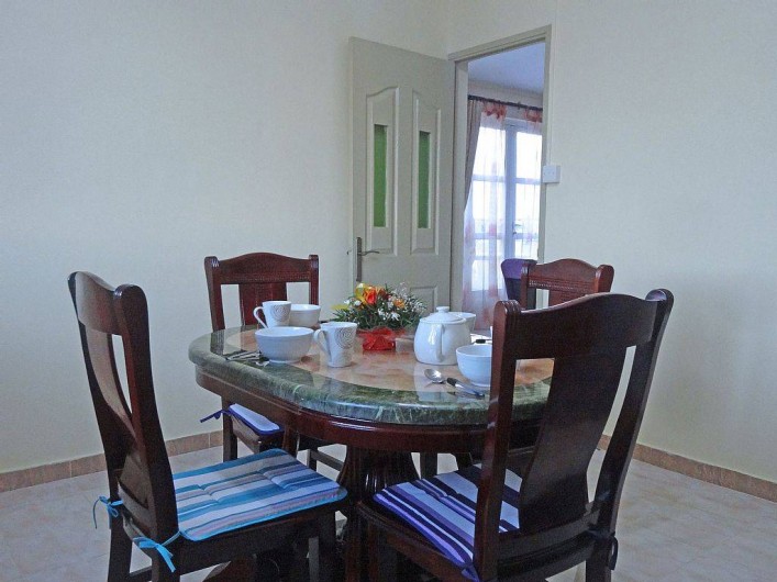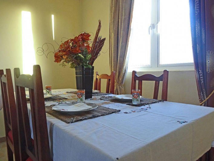 Il n’y a plus qu’à mettre le couvert (bien évidemment fourni) et passer à table : table de salle à manger et chaises pour 4 personnes, agréablement disposés pour vos repas.