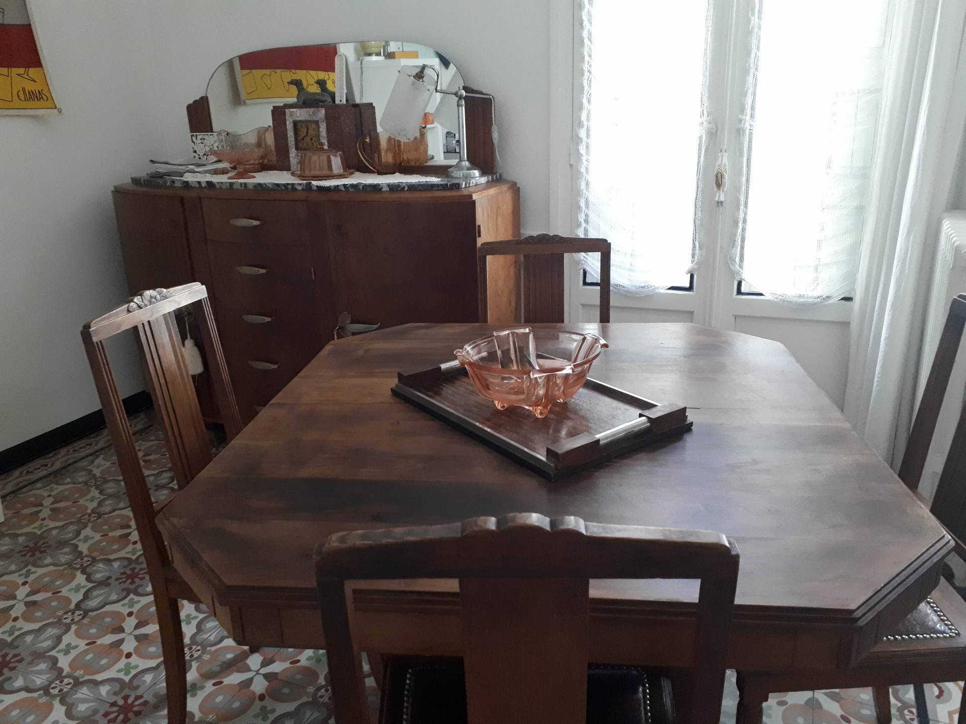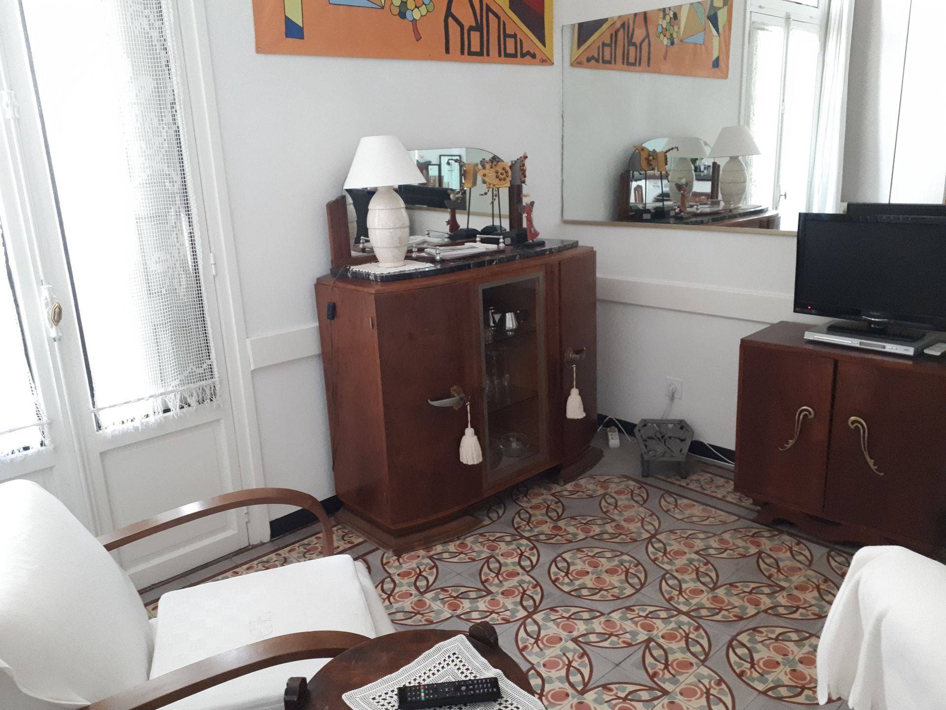 Sur la façade principale 1 salle de séjour, (salon, cuisine équipée, espace repas). Dans le salon un « cosy » complète le mobilier. Deux larges fenêtres illuminent cet espace. De l'autre côté, dans la chambre, (17 m² - lit en 180 )une armoire penderie, une psyché , une coiffeuse, une authentique boite à lumière et le carrelage carreaux ciment animent une véritable ambiance art Déco. Les deux volumes sont séparés par un hall donnant indépendance et intimité aux dormeurs, il est éclairé par un puits de jour aux vitraux année trente!