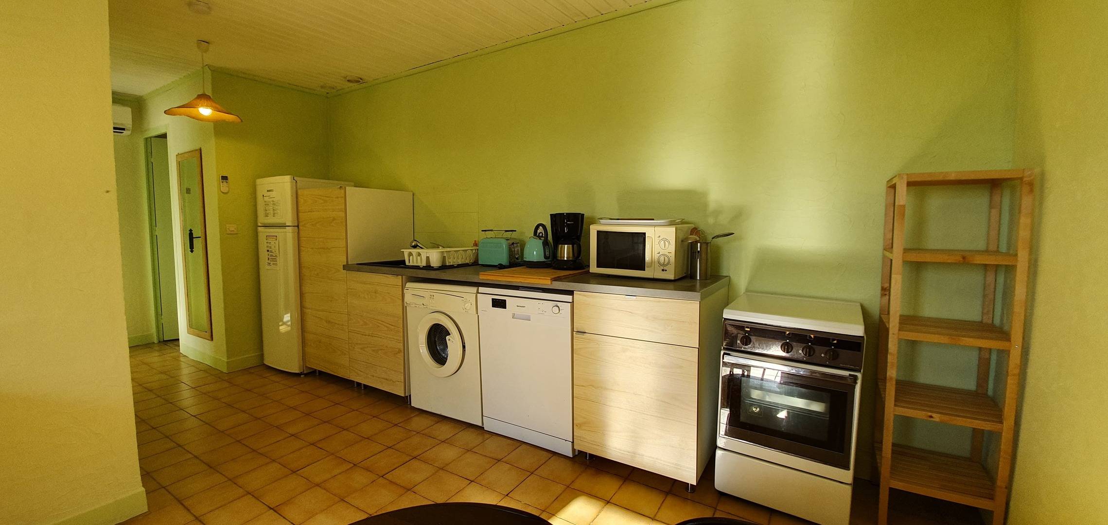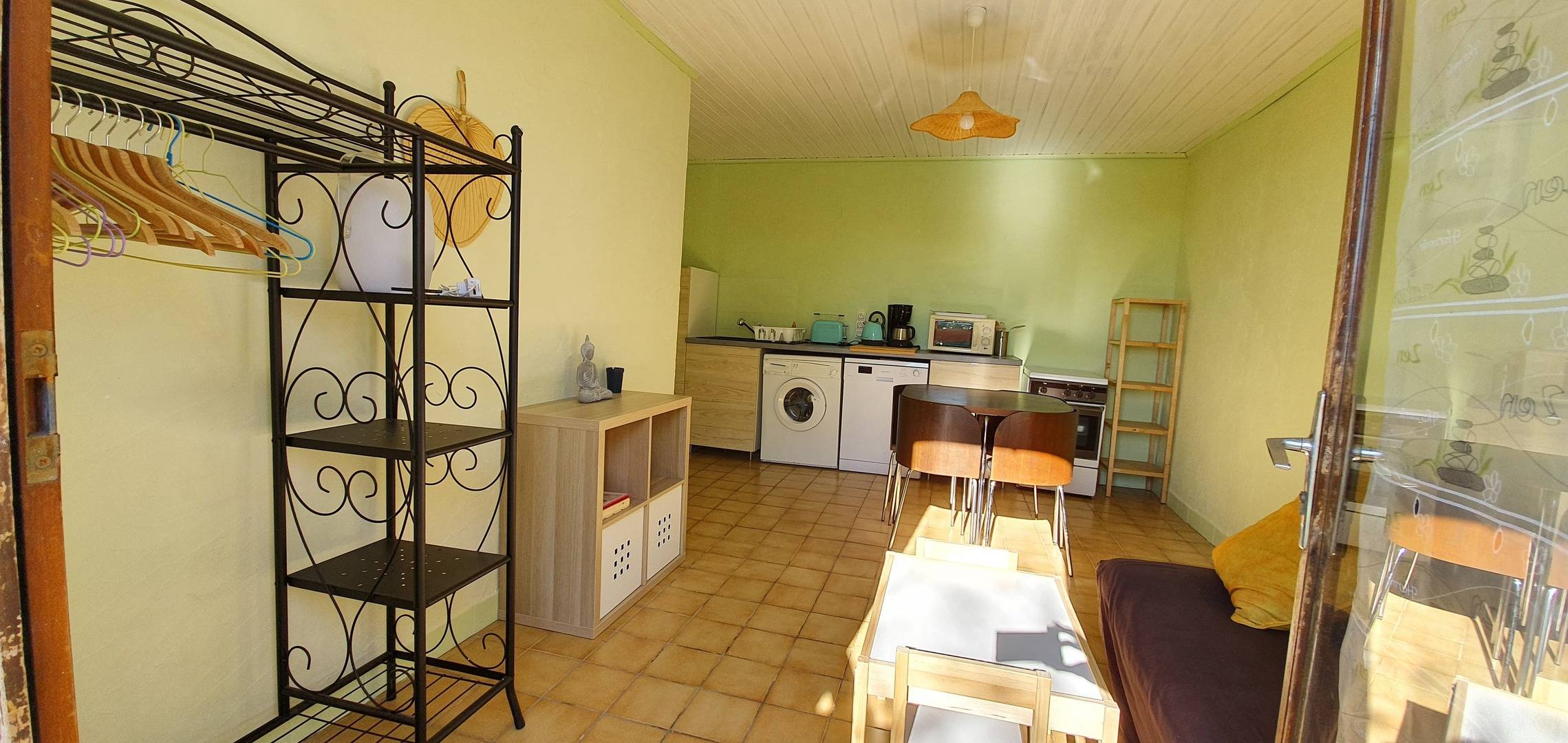 Le gîte zen est composé d'un salon / salle à manger / cuisine équipée avec lave vaisselle et