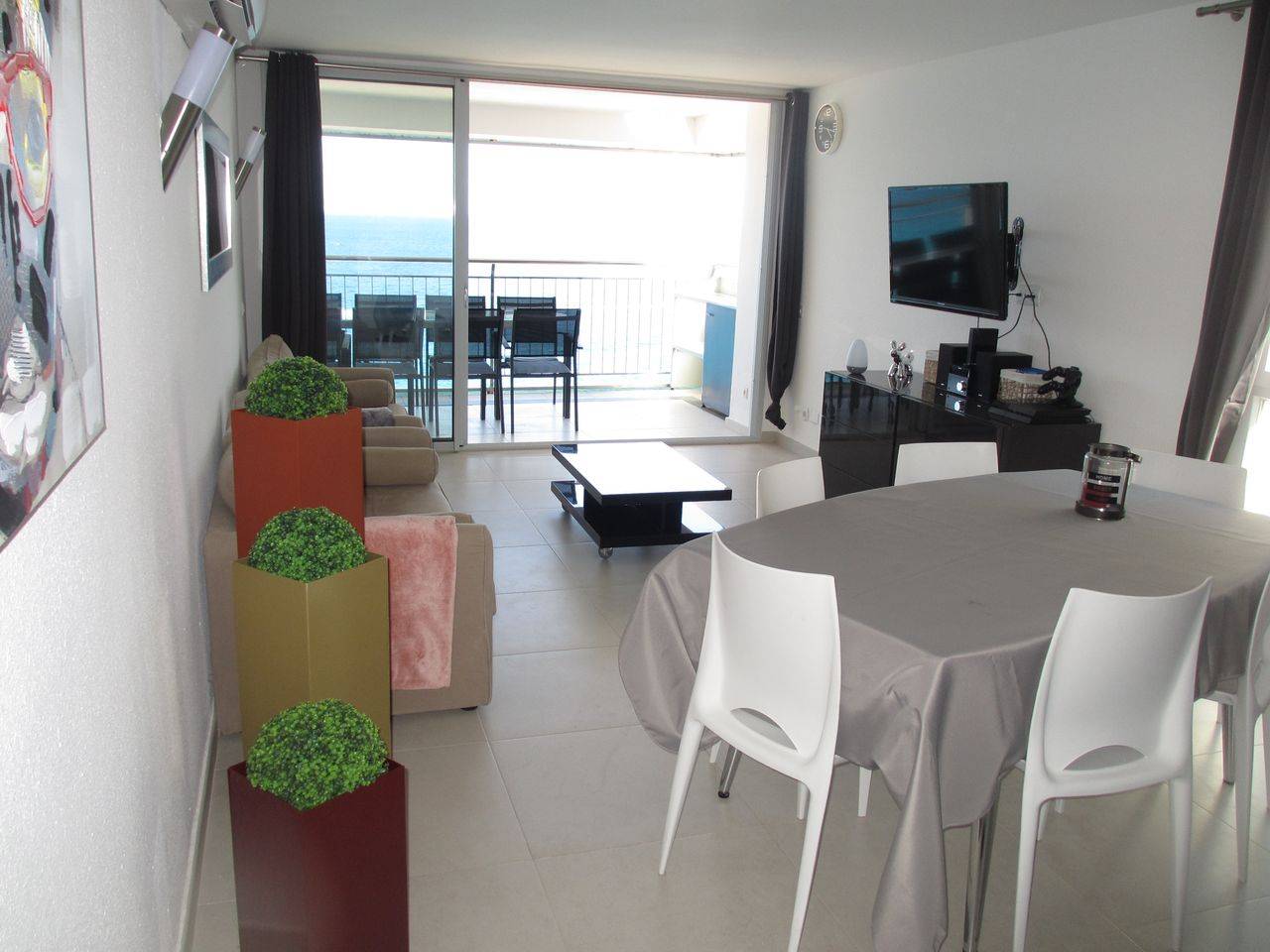Location d'un appartement entièrement climatisé de 120 m² en front de mer et sa plage de sable, idéalement situé.