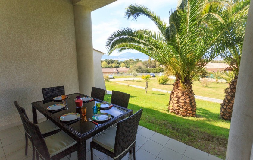- 1 terrasse couverte (10 m2) avec salon de jardin.