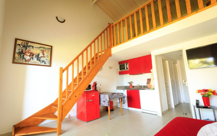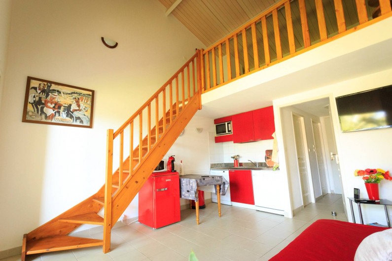 - 1 pièce à vivre avec 1 canapé-lit (140x190), la télévision avec TNT, 1 coin cuisine (plaque de cuisson, micro-ondes, four, réfrigérateur, lave-linge, lave-vaisselle, cafetière expresso, ...).