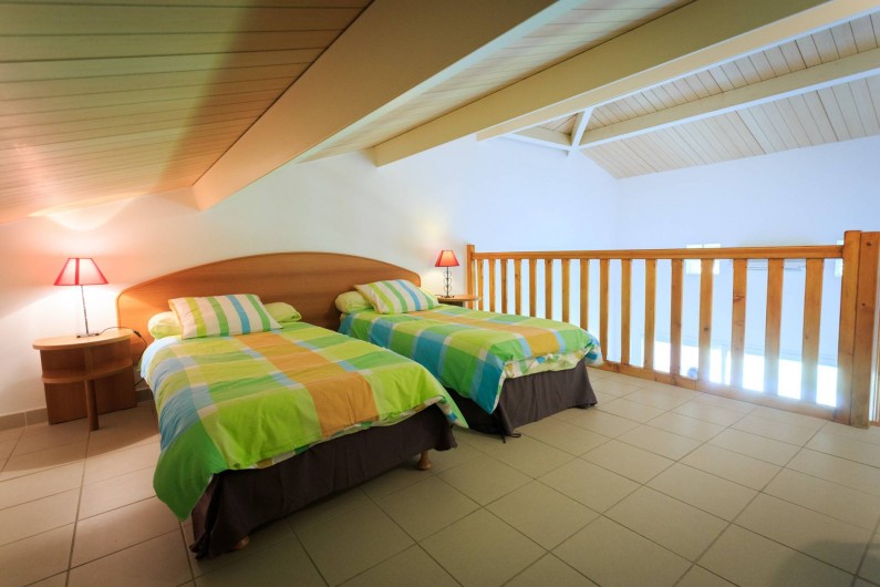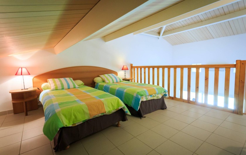 - 1 mezzanine avec 2 lits simples (90x190) et la possibilité de rajouter un lit d'appoint si nécessaire pour une