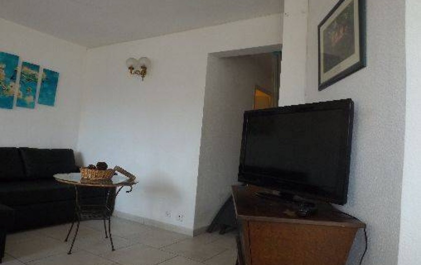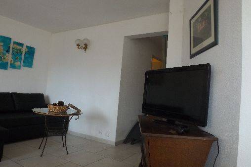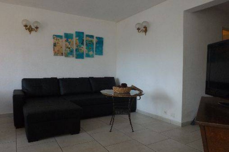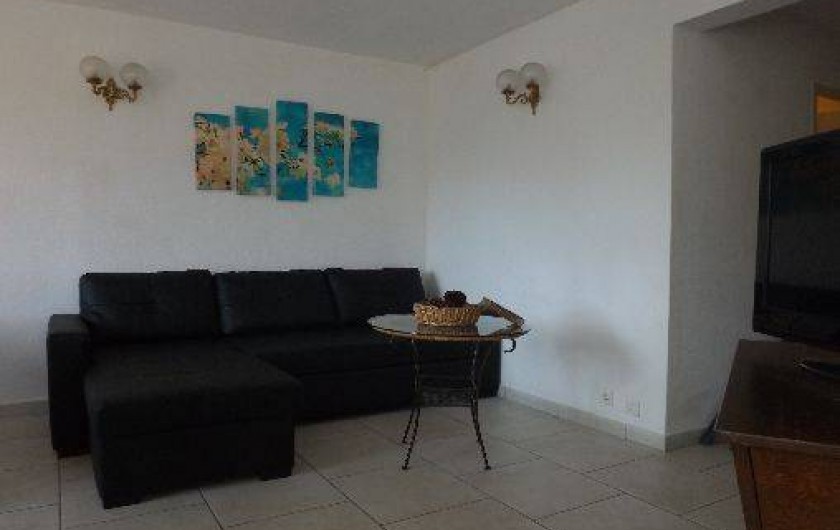 L'appartement est composé d'un séjour avec banquette, table basse, table