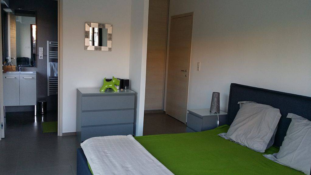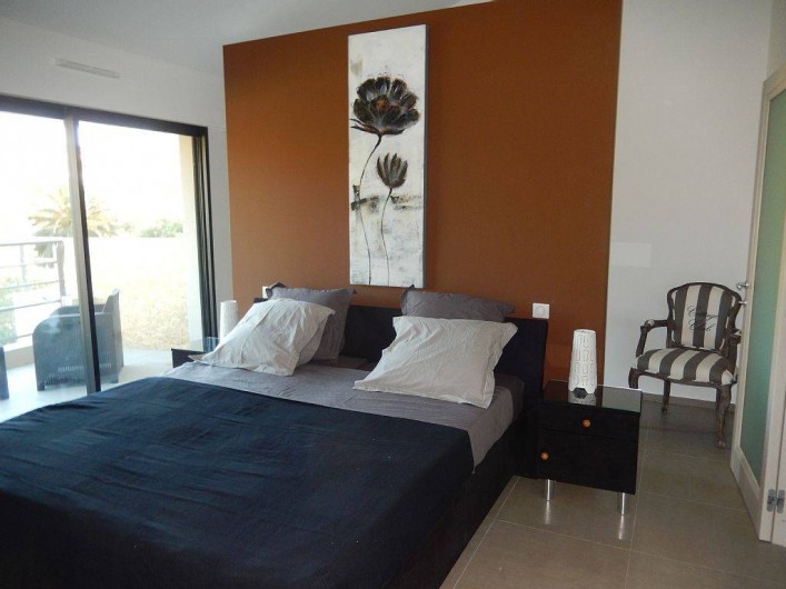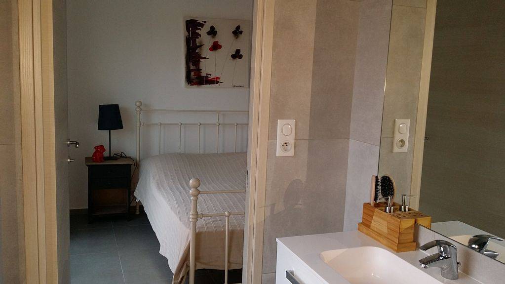 Une chambre principale de 20 m2, lit king size, avec salle de bain (baignoire et douche), dressing, TV, un cabinet de toilette ainsi qu'une terrasse privée de 10m2.