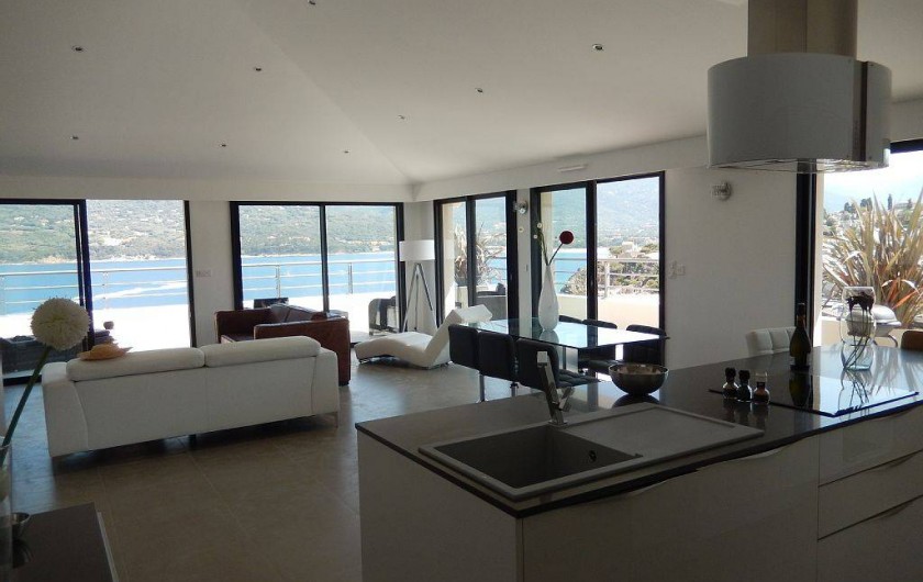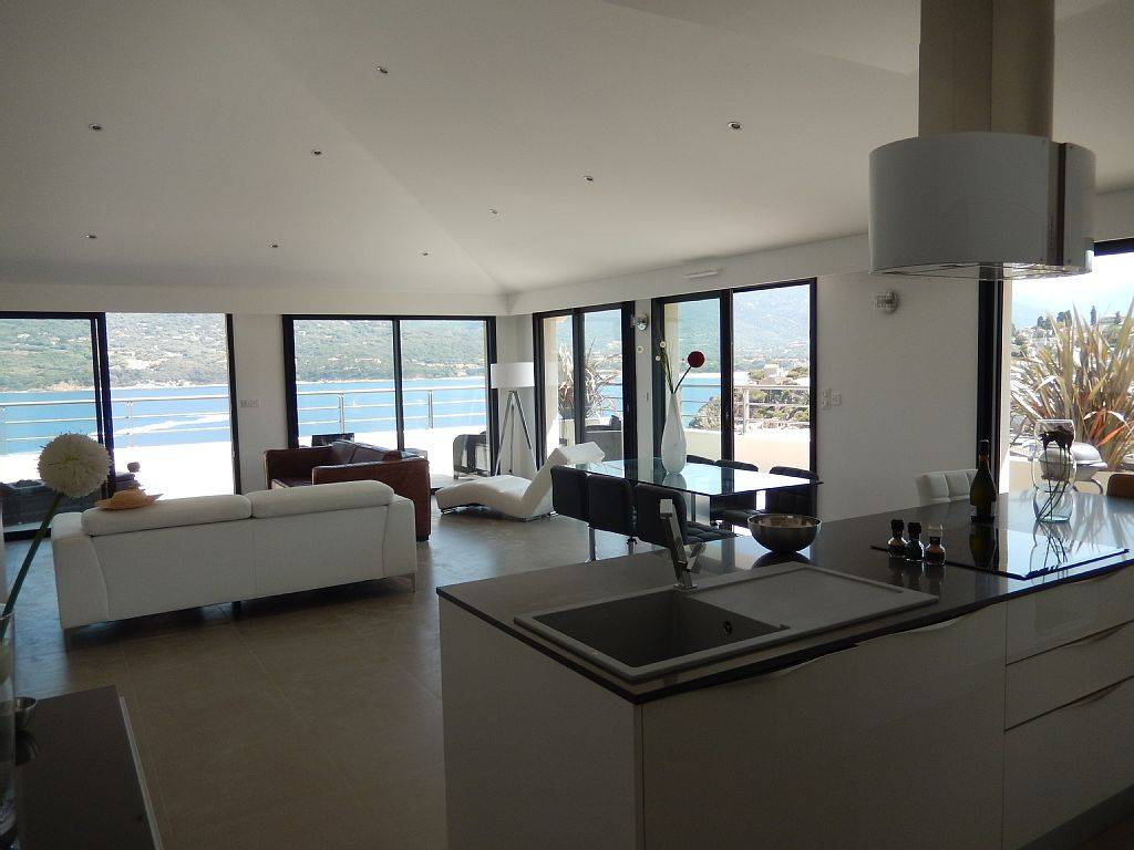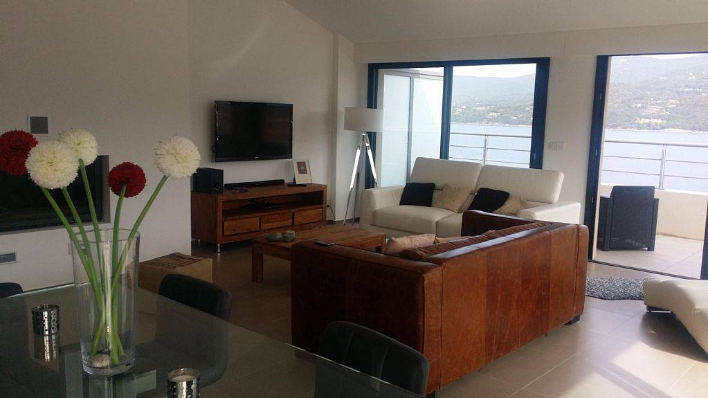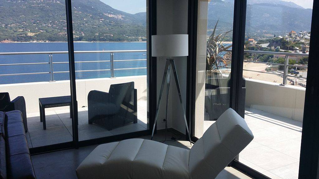 Cet appartement climatisé est composé d'une vaste et lumineuse pièce principale (55 m2) donnant sur terrasse (85 m2) avec vue mer imprenable. La cuisine ouverte sur séjour permet elle aussi de profiter d’une vue magnifique sur le Golfe du Valinco.