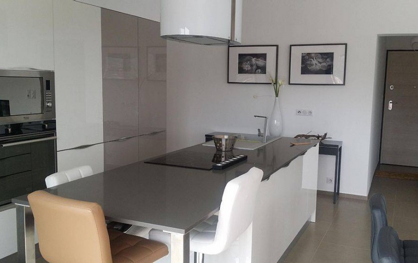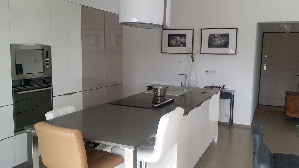La cuisine, au Design contemporain, est entièrement équipée et dispose également d’une cave à vin.
