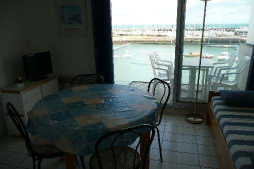 Face au Vieux Port avec magnifique vue sur la baie de Quiberon, petite résidence tranquille "La Villa du Capitaine". Appartement de type 2 pièces d'environ 38m² pour 4 personnes, 1er étage sans ascenseur, porte n°9 et comprenant:entrée, coin cuisine aménagé d'un réfrigérateur, four et plaques électriques, micro-ondes; séjour-salon vue sur le Port avec deux lits gigognes de 90cm pour deux personnes et une télévision. Une salle d'eau avec lave-linge, un wc séparé. Une chambre avec deux lits individuels de 80 cm pour deux personnes. Terrasse vue port et meubles de jardin. Parking extérieur n°3.