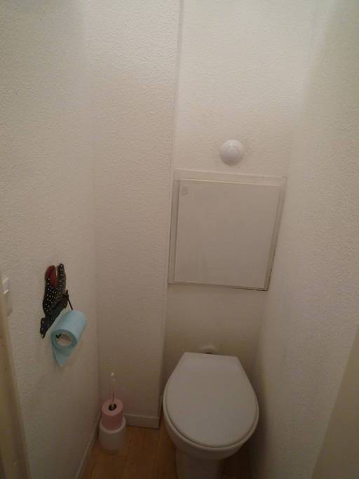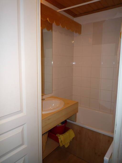 La salle de bain avec baignoire-douche est petite mais fonctionnelle. WC séparé.