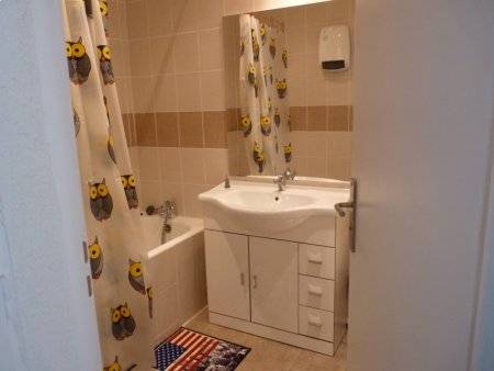 Entrée avec une salle de bain, une salle d'eau avec wc, et un wc indépendant, joli séjour spacieux et lumineux avec cuisine entièrement équipée, balcon exposé sud.