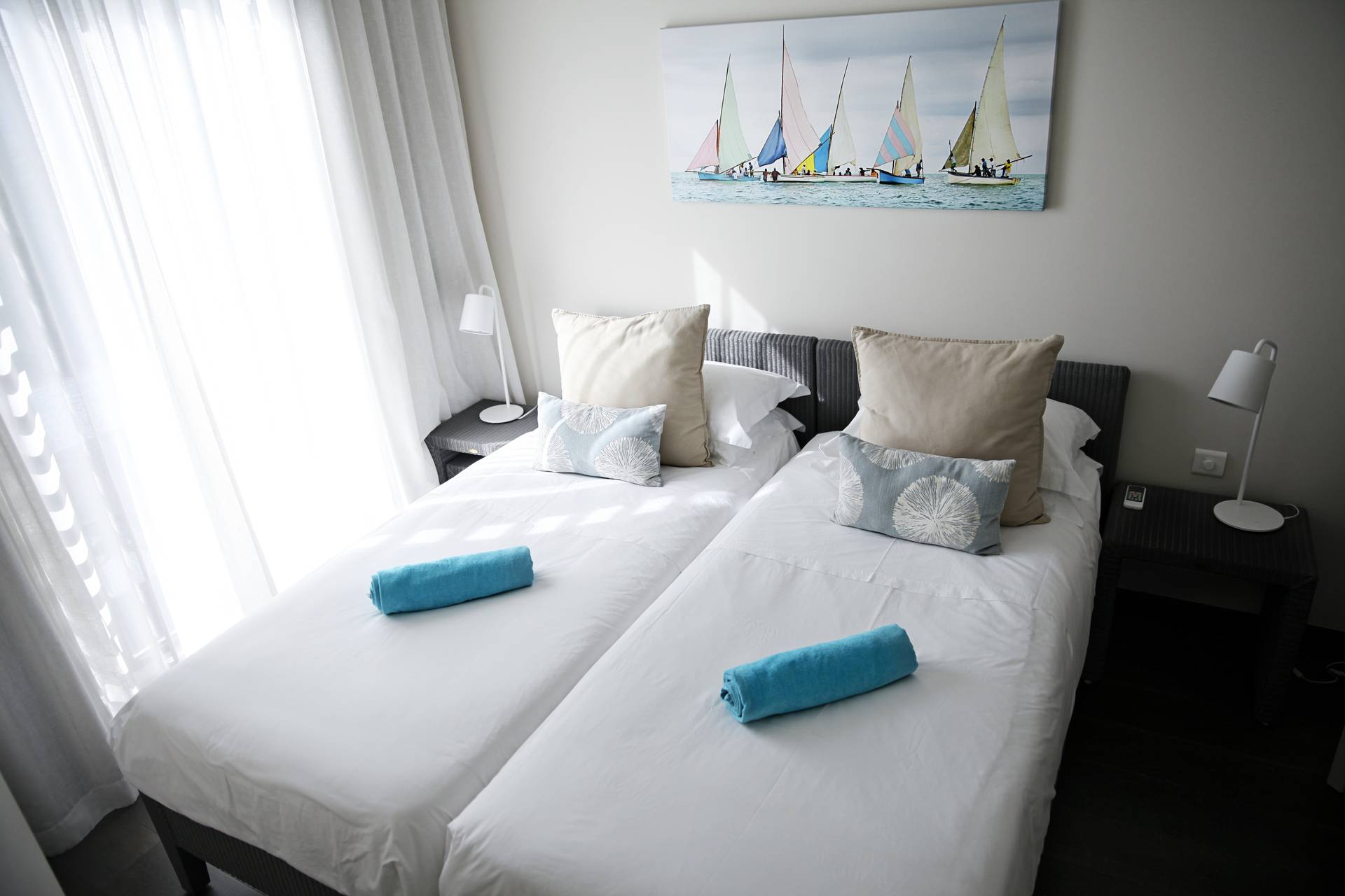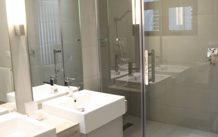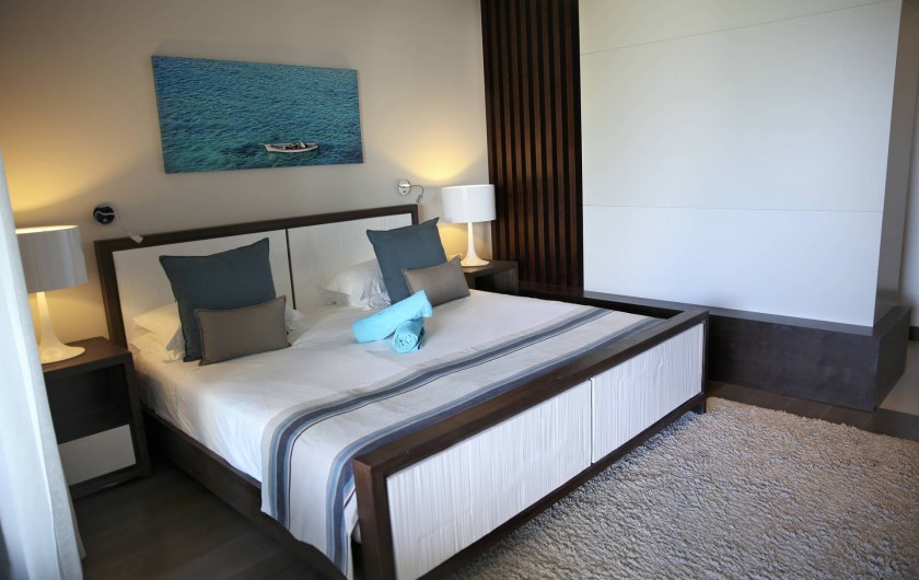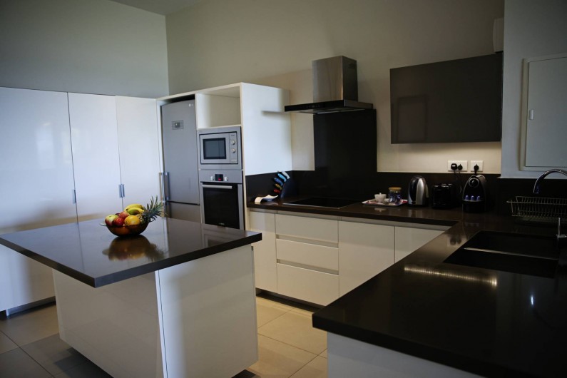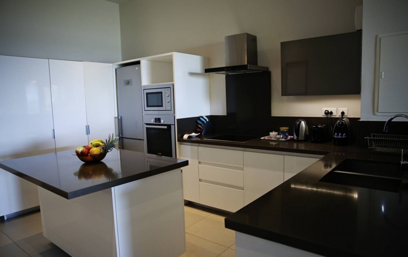 avec une superficie de 155m2, décorée avec gout, comprenant une cuisine moderne toute équipée, 3 chambres à coucher avec salles de bains attenantes, une salle de séjour spacieuse s’ouvrant sur une terrasse qui vous offre une vue spectaculaire sur l’océan et, en plus une vue de l’arrière sur la pittoresque colline de la Tourelle.