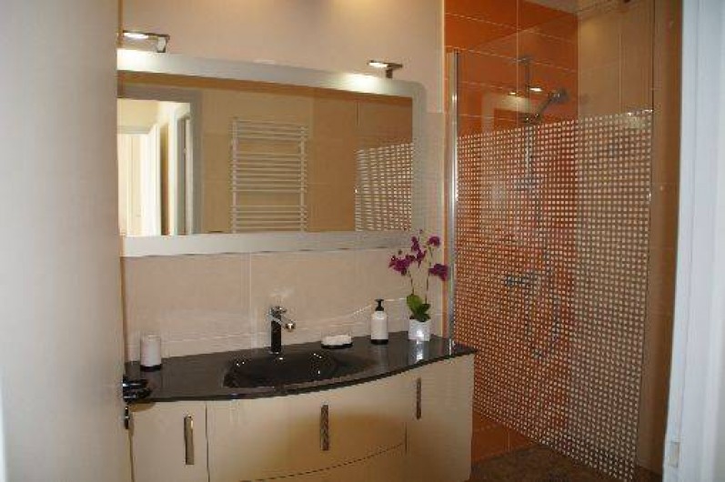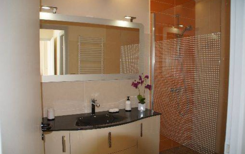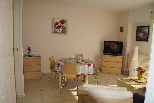 appartement grand confort et de 45m² avec balcon avec une entrée avec commode et porte manteau - un séjour avec canapé convertible - un fauteil - une table ronde + 4 chaise - une commode avec television écran plat 81cm - un placard - une cuisine avec 4 feux gaz - un four - un micro-ondes - cafetière et bouloir et gril pains - un grand frigidaire avec congélateur - une chambre avec lits de 160 et grand placard - une salle de bains avec douche italienne -