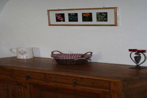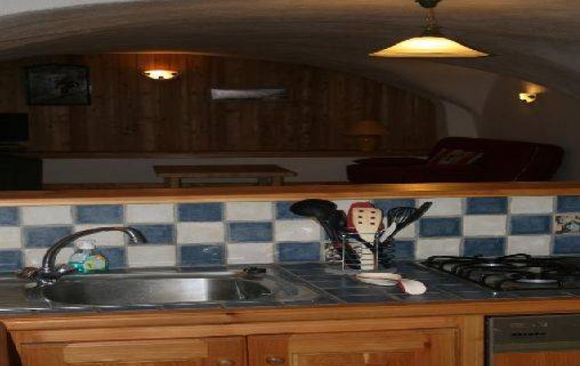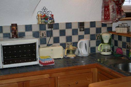 dans l entrée spacieuse se trouvent les toilettes ensuite nous rentrons dans la grande pièce ou se situe le coin cuisine américaine tout les appareils ménagers (four micro-onde four électrique frigo lave vaisselle 3 feux gaz et1 plaque électrique ainsi que presse oranges etc)