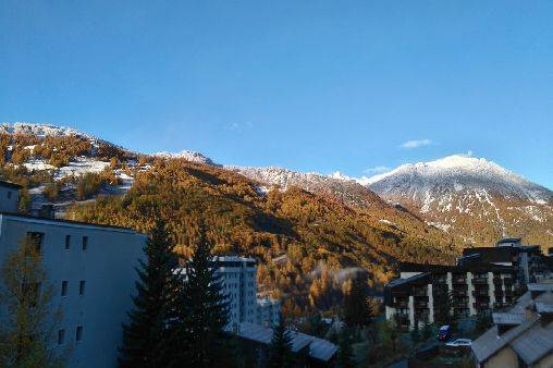 téléphérique, proche des pistes et des commerces mais tout en étant à l'écart du bruite ! Il a vue sur montagne, séjour