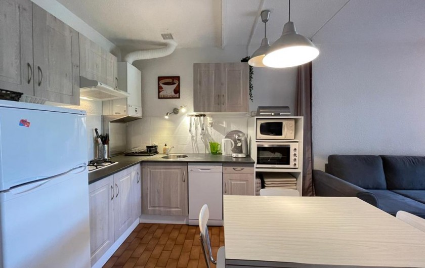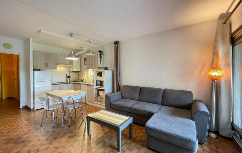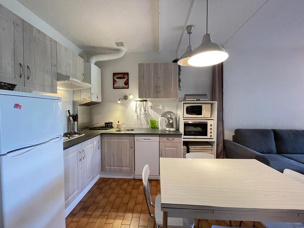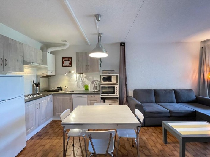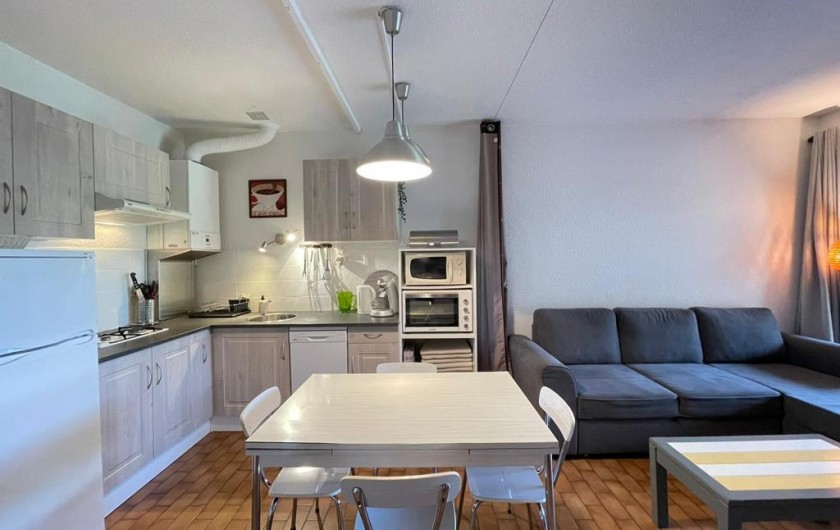 wc indépendant. Une grande pièce comprenant un coin cuisine, un salon avec deux banquettes clic-clac. Une télévision, un accès internet.