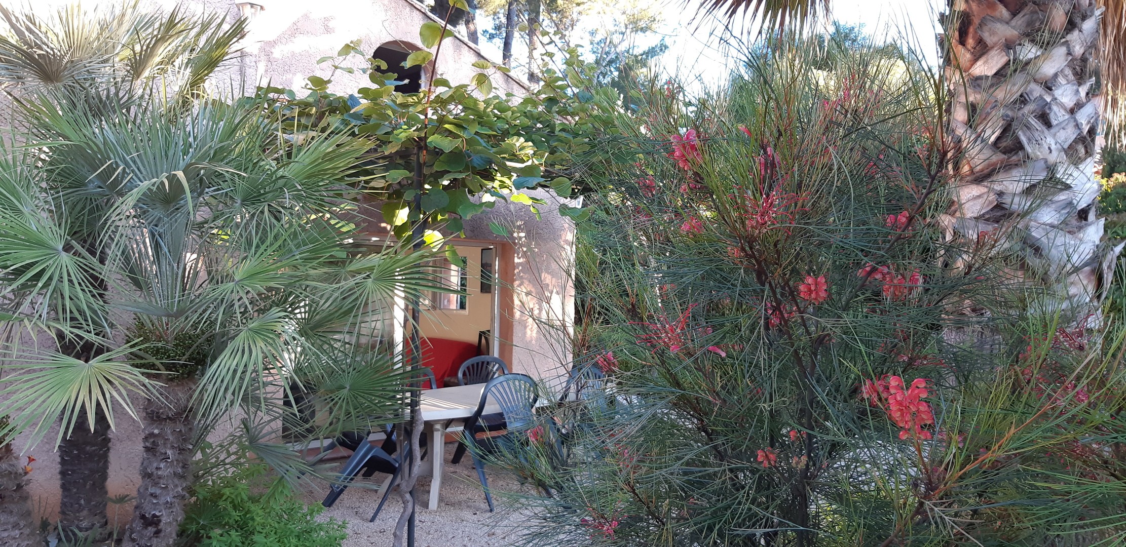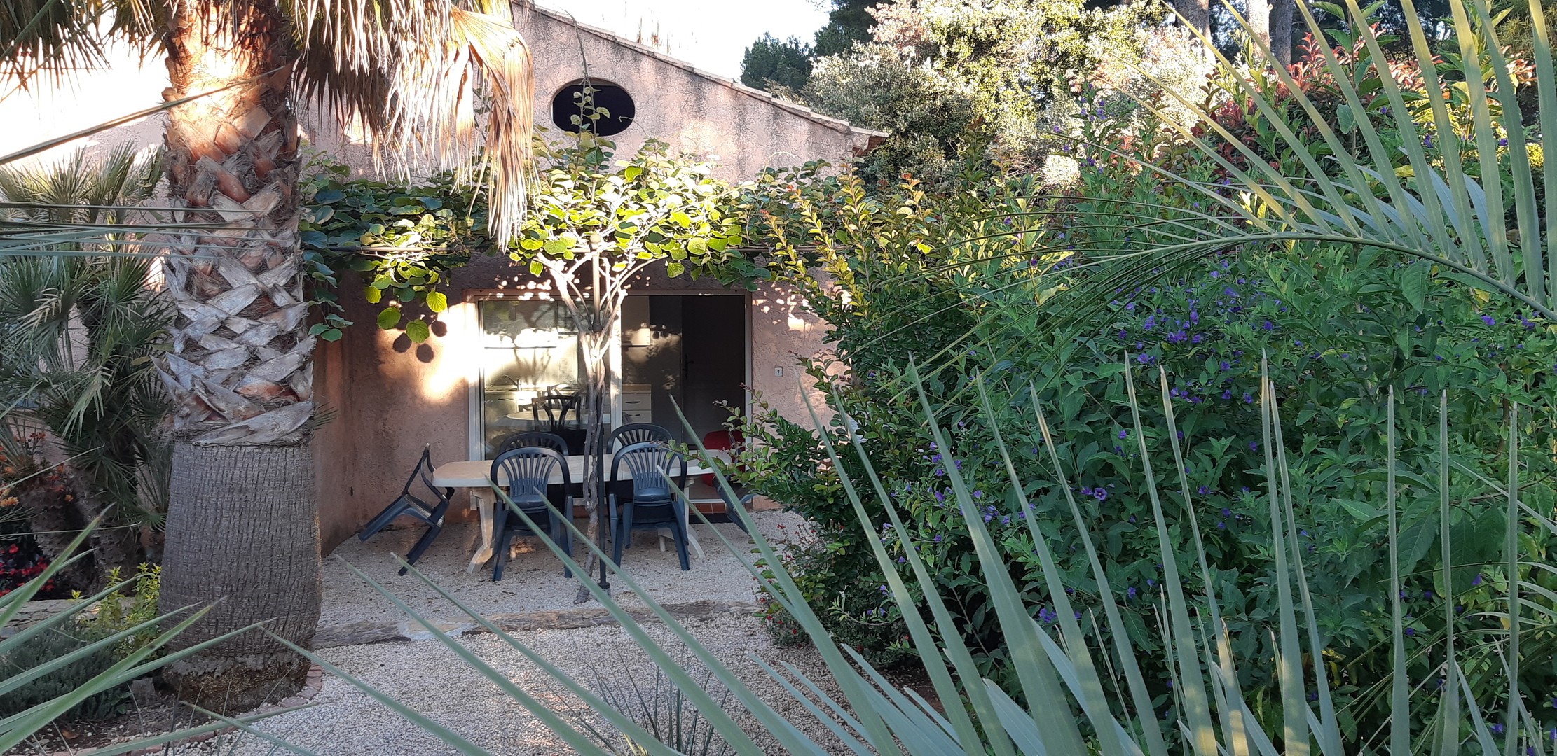 Location d'un appartement à Saint Cyr sur Mer au calme,avec tous les équipements,climatisation,salon de jardin,transats, avec piscine et jardin paysagé de 2000 m2.
