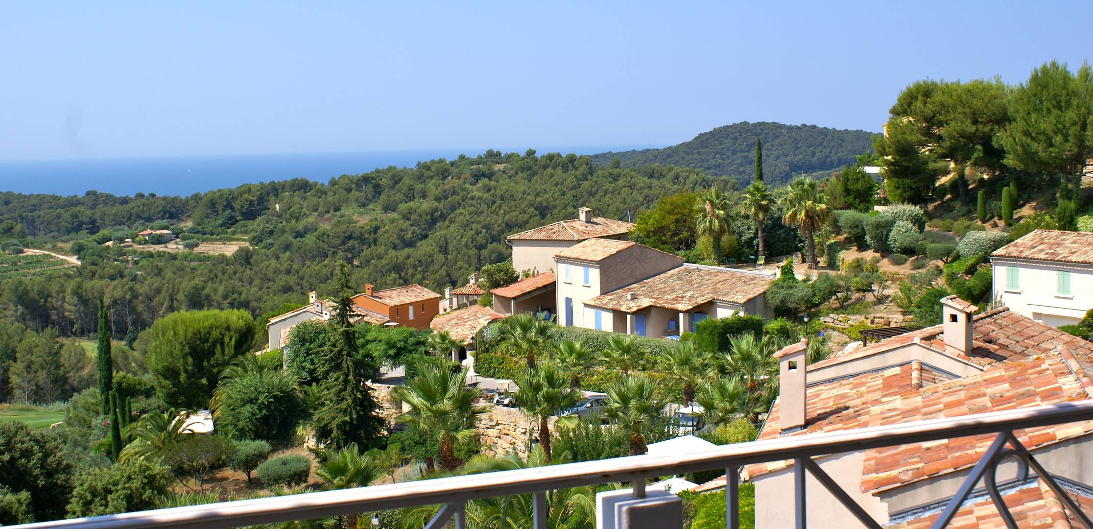 téléviseurs écran plat avec Canal+ et chaines TNT, cuisine entièrement équipé, une terrasse avec une vue époustouflante sur le golf, les vignes, la fôret et la mer.