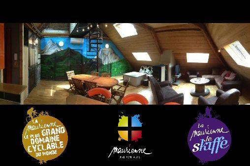 - La pièce de vie : Vous y trouverez la cuisine américaine avec un bar, une table douze places pour le repas, le salon, le petit salon enfant (table de jeux et repas avec 4 places ou +) et un lit futon deux places. Le salon est équipé d'un grande TV avec TNT et d'un canapé confortable convertible pour deux couchages, et de fauteuils...