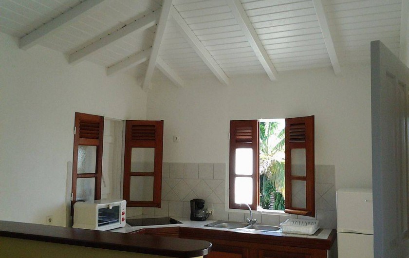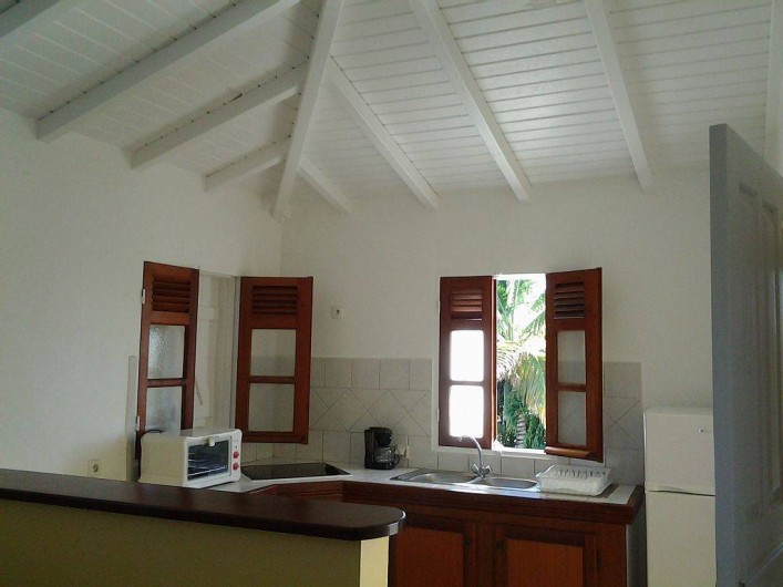 La cuisine est équipée : une plaque de cuisson,un four micro-onde avec grill,une cafetière,un grille-pain, un réfrigérateur avec compartiment congélation et la