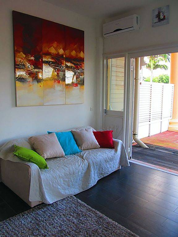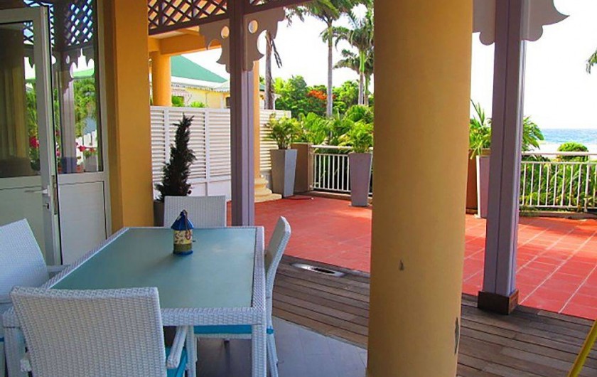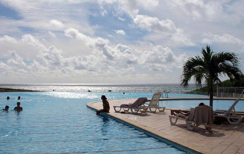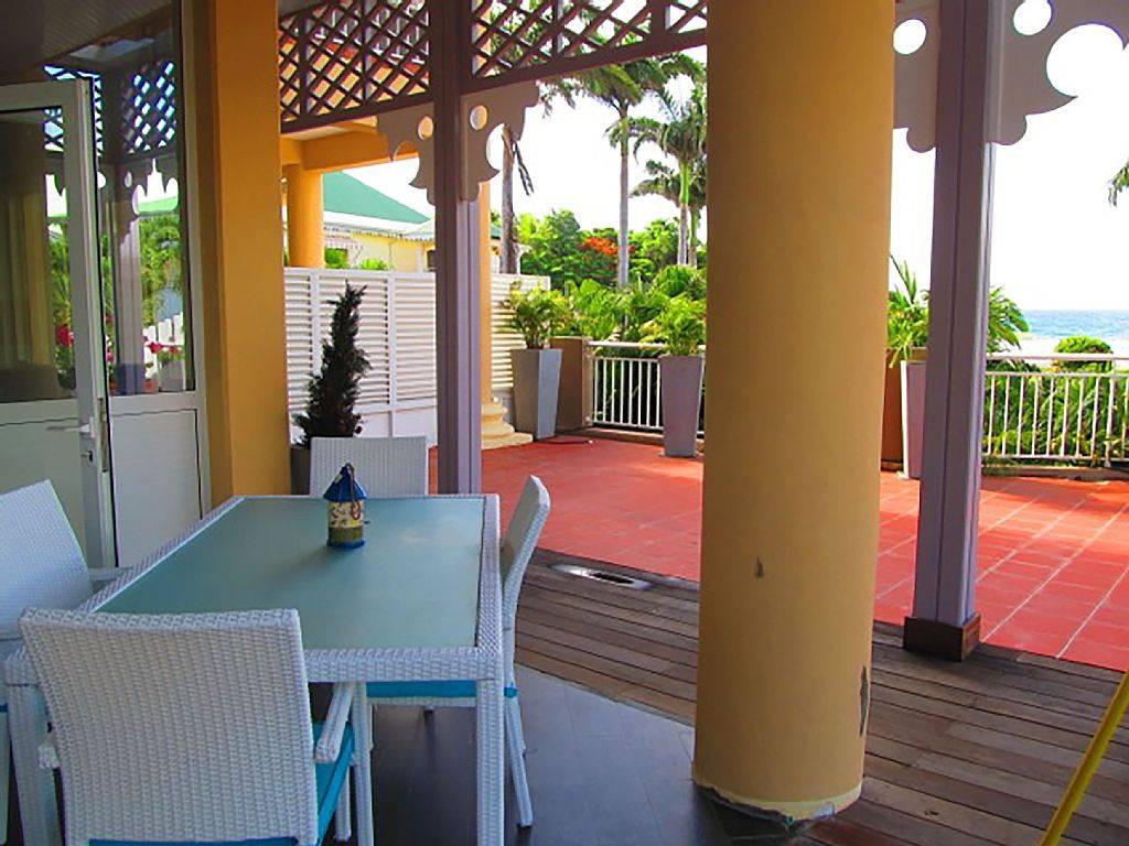 A Saint- François, Bel appartement, de standing, immense terrasse, devant la plage, vue mer imprenable, dans une Résidence de standing , sécurisée, air conditionnée dans les 2 chambres, 1 immense piscine. Restaurant sur la plage, bel appartement de 3 pièces, au RDC, avec une très grande terrasse ( 2 chambres ,un canapé convertible, 6 couchages ) comprenant: Très grande et belle Terrasse couverte, , faisant également office de salle à manger, avec une table pour 6 personnes, ( 6 chaises), un salon, un canapé convertible ( 2 couchages ), table basse ,Télévision avec( bouquet