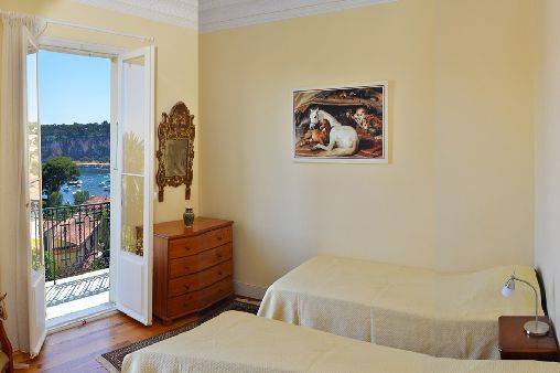 2 chambres, Master bedroom équipée d’un grand lit queensize, l’autre avec 2 lits simple pouvant être assemblé pour faire un second queensize + grand balcon commun avec vue mer côté Sud Ouest (Baie des Fosses, mer et Cap Ferrat)