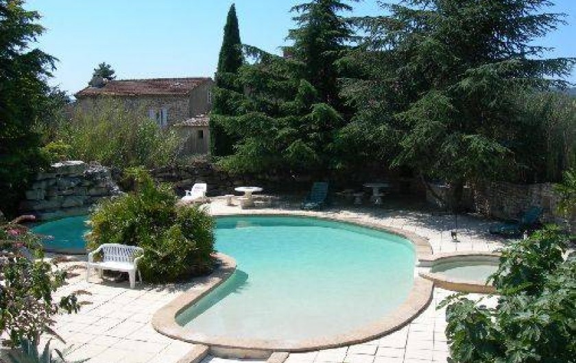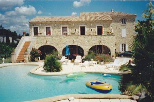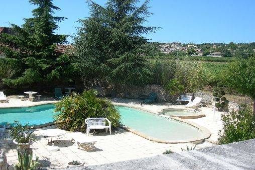A St Julien de Peyrolas, au fond des gorges de l'Ardèche, 4 appartements tout confort, dans grand mas provençal en pierres avec piscine 13/5 sur 5000 m² de terrain clôturé et arboré avec pinède. Chaque logement comporte un séjour avec coin cuisine équipé, une chambre et une salle de bain. A votre disposition,jardin, terrasses avec salon de jardin, jeu de boules, barbecues, jeux d'enfants ( toboggan, portique). Rivière, l'Ardèche, à environ 500m.