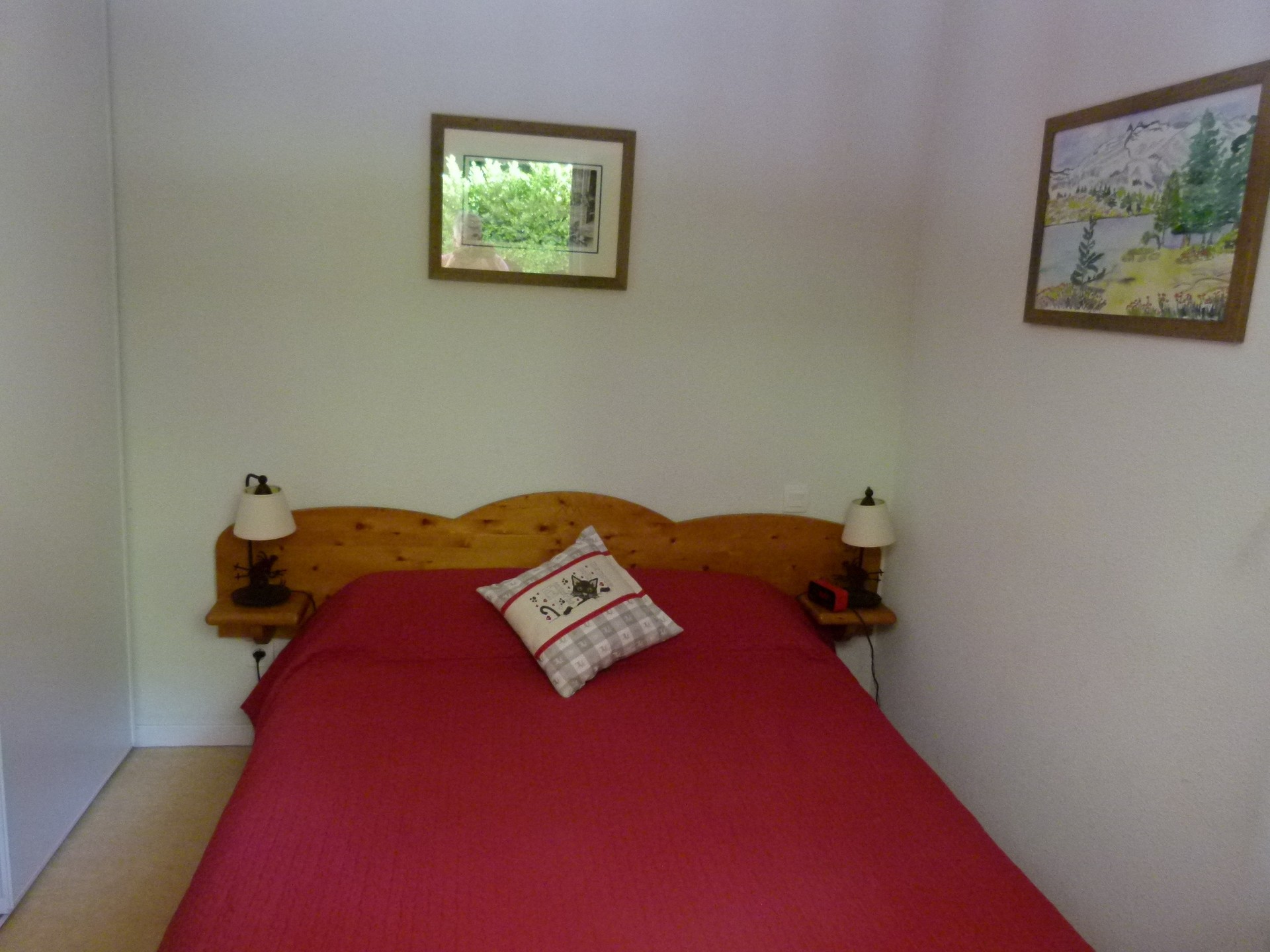 Chambre avec 1 lit 2 personnes couette et oreillers, 1 grand placard 1 fenêtre