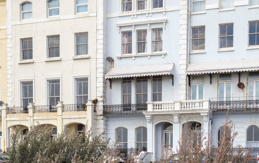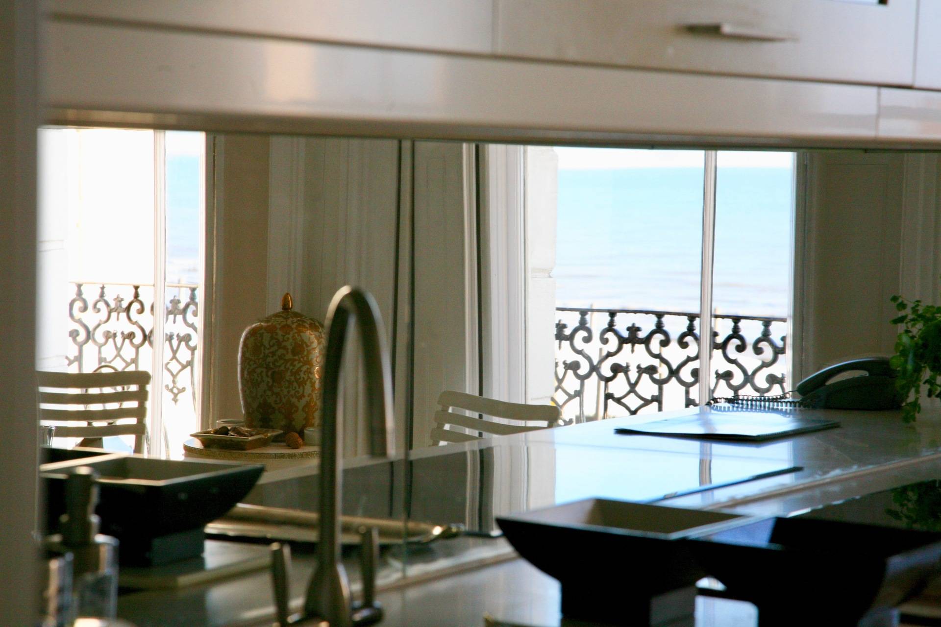 Un appartement de deux chambres à coucher lumineux, élégant et confortable au rez-dechaussée surélevé, just en face de la plage et de la promenande au bord de la mer.