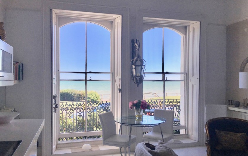 À l'exterieure, savourez un verre de vin pétillant ou un café matinal Nespresso fraîchement préparé en admirant la mer depuis le charmant balcon de Roméo et Juliette, et profitez de l'atmosphère détendue de l'appartement. 3 niveaux de terrasse à l'arrière offrent une espace protégée du vent pour la detente privée en plein air.