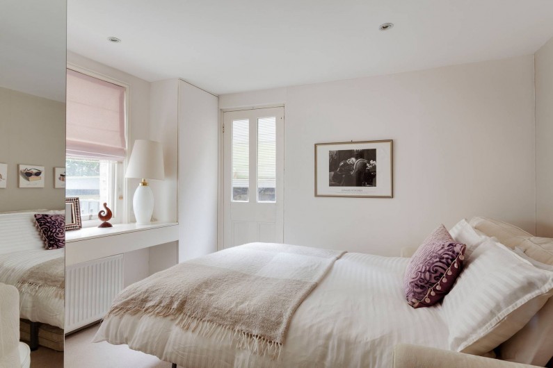 Les deux chambres calmes sont situées à l'arrière, donnant sur la terrasse, offrant une grande espace de rangement pour les vêtements.