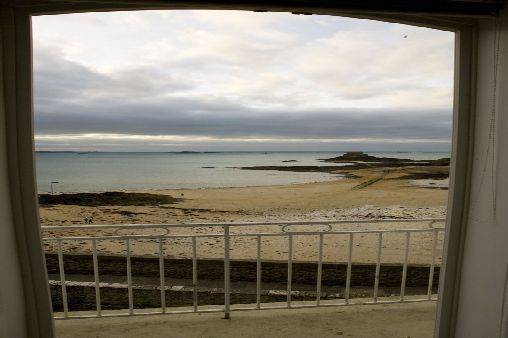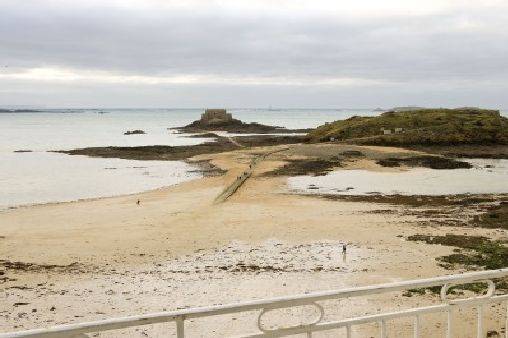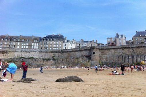 Situé au dessus des remparts, l'appartement orienté sud/sud-ouest vous offre une vue spectaculaire sur la mer et est situé au pied de la plage surveillée de Bon-Secours où est implantée l'école de voile ainsi qu'une piscine d'eau de mer, ce qui permet de se baigner à marée basse.