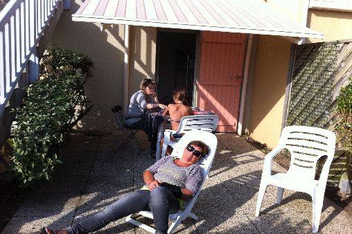 Rez de chaussée : jardinet plein sud avec terrasse et salon de jardin.