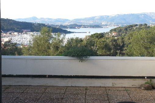 Idéalement situé avec une vue extraordinaire sur la rade de Toulon (180° ), grande terrasse de 30m2 qui prolonge le séjour dans petite résidence fermée avec parking personnalisé. L'appartement se compose d'une entrée avec placards, d'un séjour avec cuisine américaine, de 2 chambres, S de B et WC séparés et d'une place de parking.
