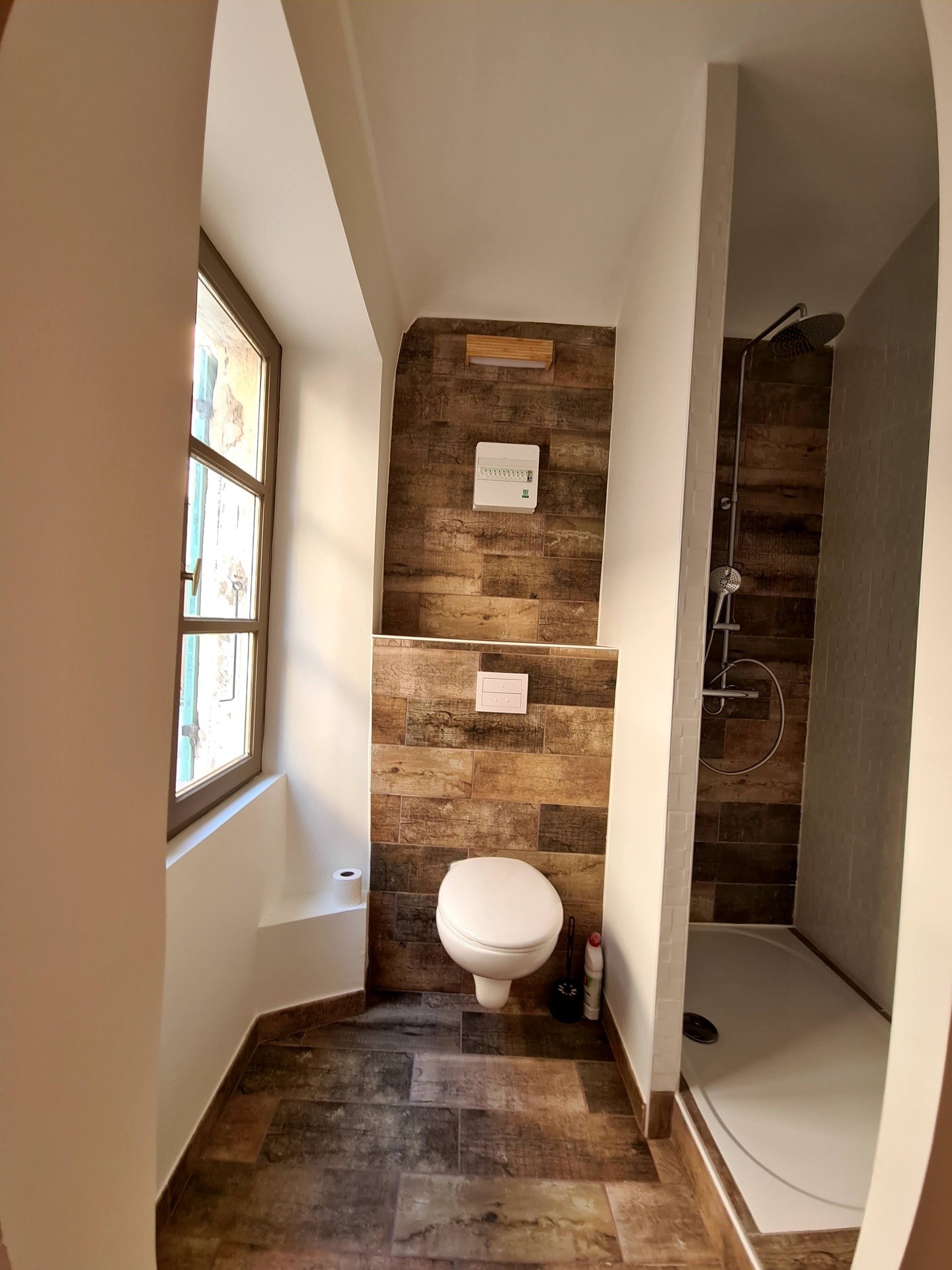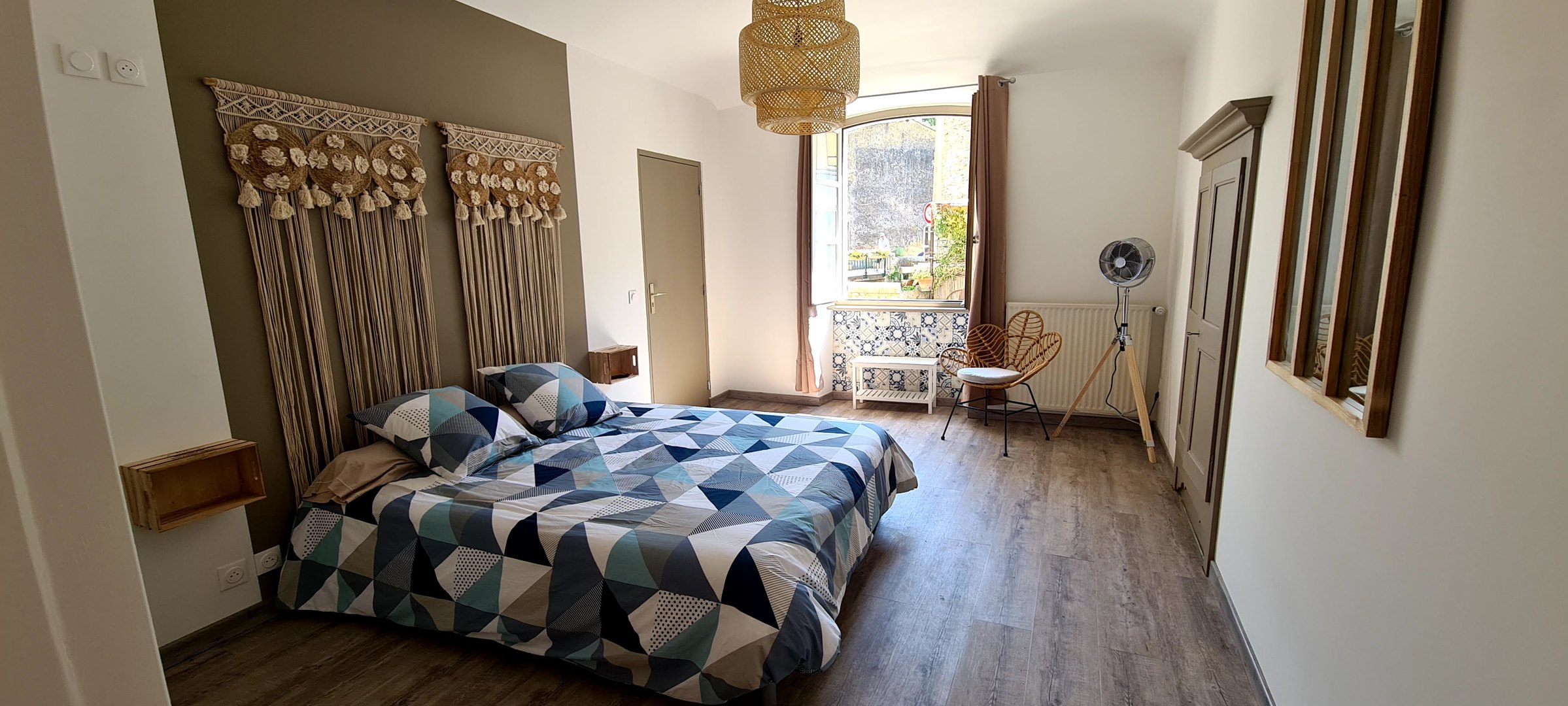 Appartement refait à neuf en préservant le charme de cette grande bâtisse centenaire qui est situé au cœur du village, l’un des plus beaux village labellisé « village de caractère » au pied de son château-fort, avec son parc pour enfant et ces espaces vert au bord de la rivière, vous y trouverez 5 restaurants dont un avec un point boulangerie, pharmacie, maison médicale, commerce d’artisanat d’art sur la place Poussiac au cœur du village.