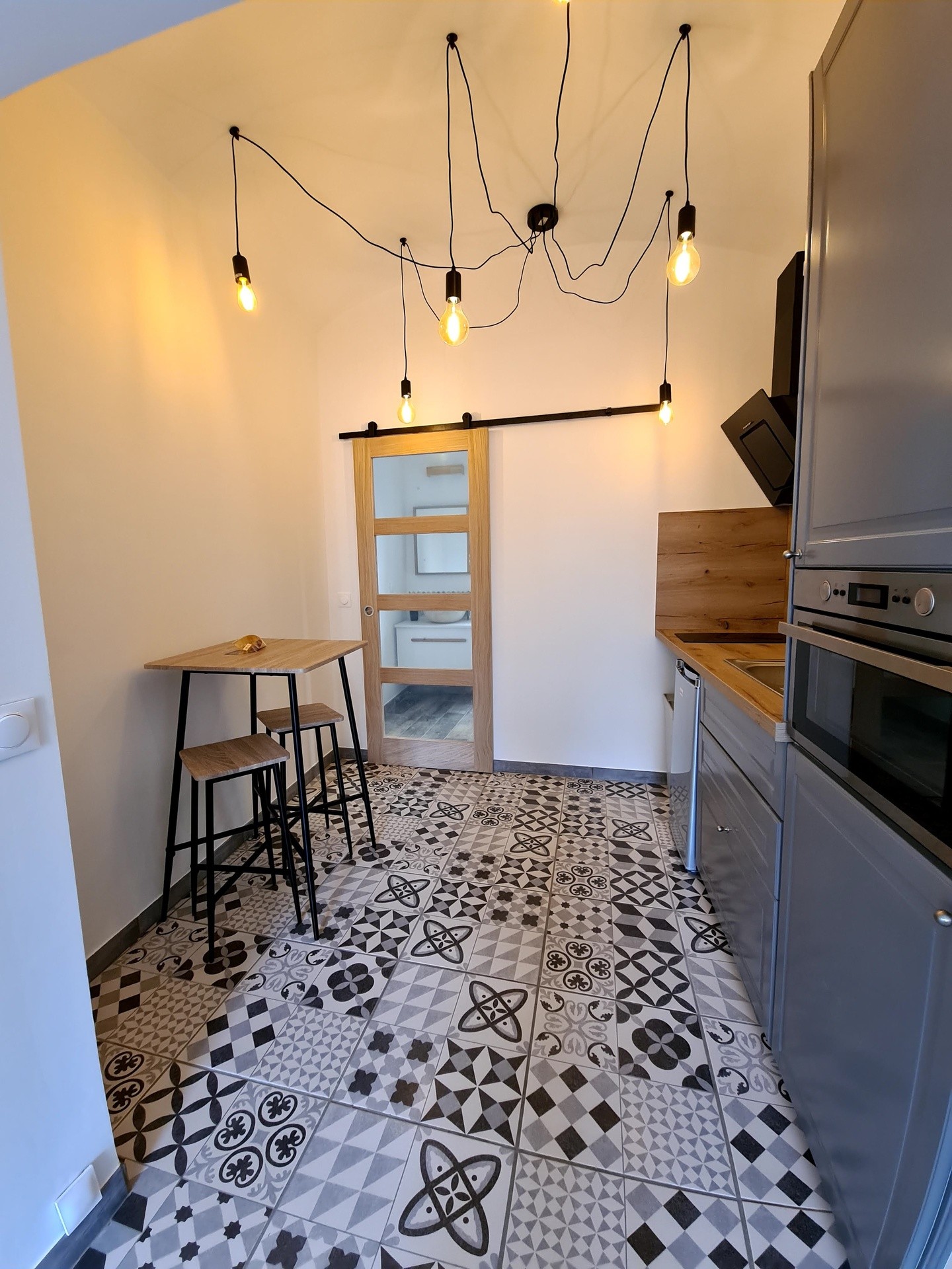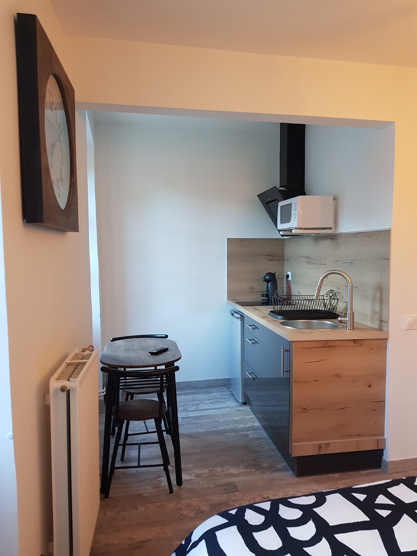 Appartement comportant 1 pièces : 2 chambre avec un grand lit confortable, table repas avec 2 chaise, une salle de bain avec douche a l'italienne, WC, kitchenette avec tous les équipements nécessaires, TV, wifi.