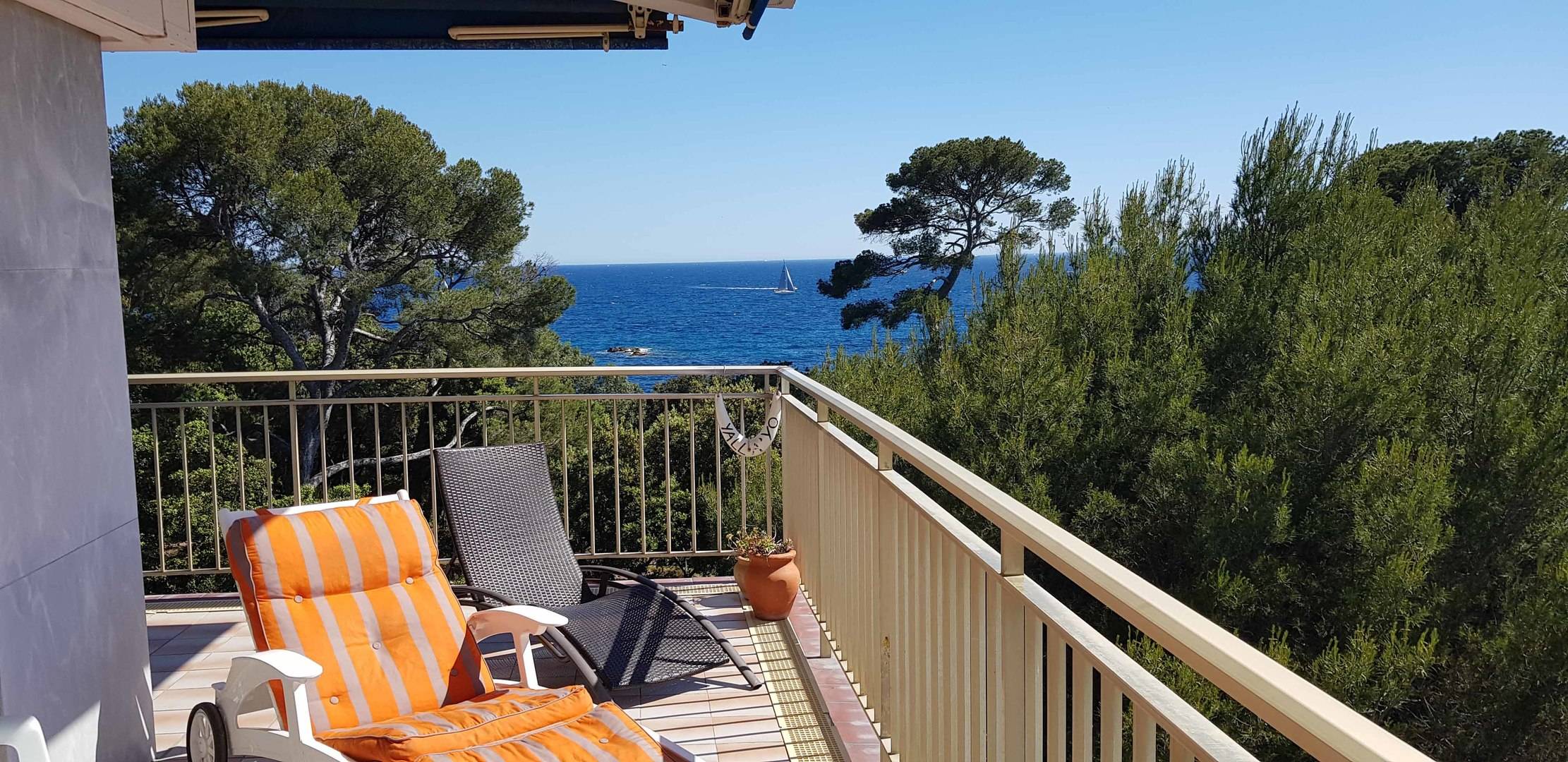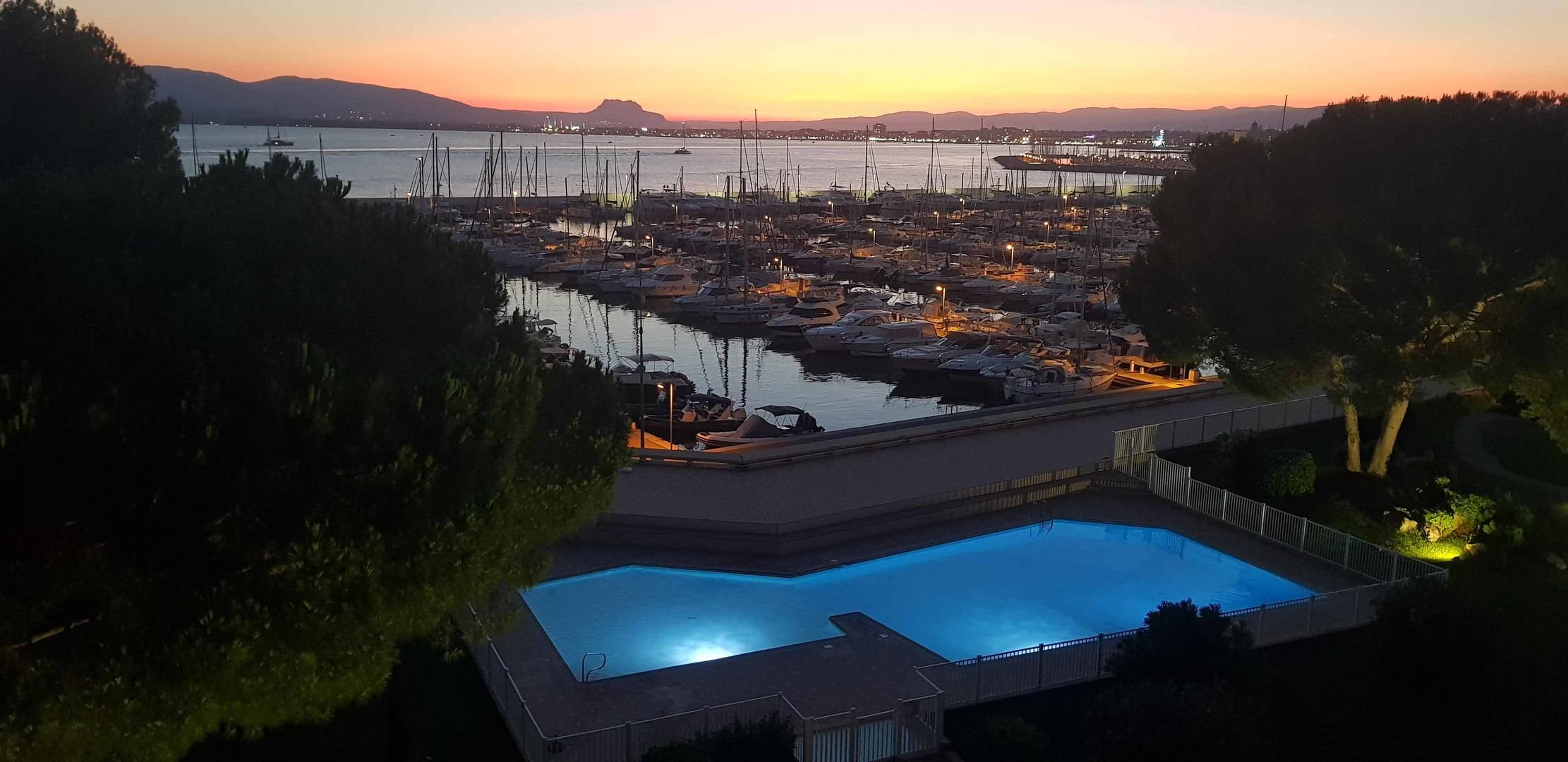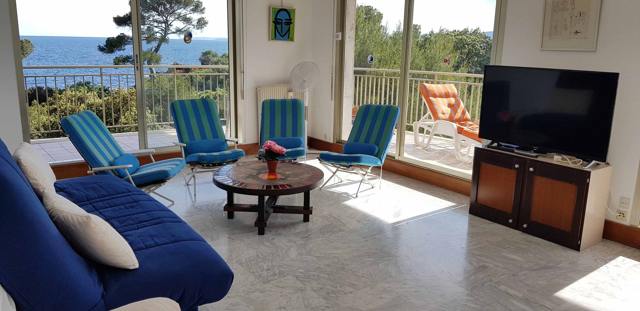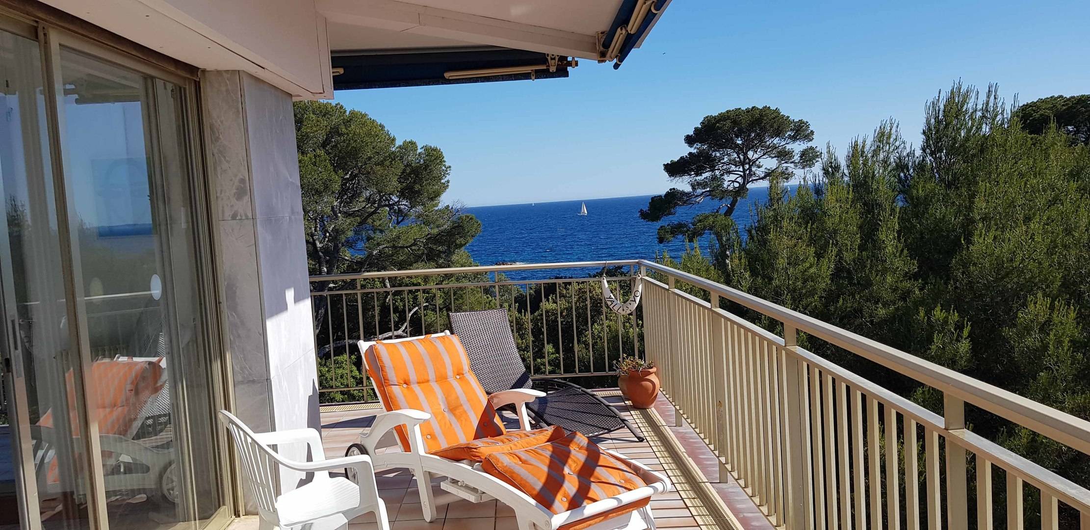 Saint Raphaël. Appartement meublé au dernier étage, très calme, les pieds dans l'eau avec une vue panoramique exceptionnelle. Dans une résidence de prestige, avec ascenseur, vous serez subjugué par la vue panoramique sur le port Santa Lucia et la baie de Saint Raphaël allant jusqu'à la baie de Saint Tropez. À proximité de l'appartement, à partir de 50 mètres, vous trouverez de très nombreuses criques loin de la foule des plages de sable, en cherchant un peu, vous trouverez des emplacements d'exception. Si les plages de sable fin vous attirent, vous en trouverez de très belles,