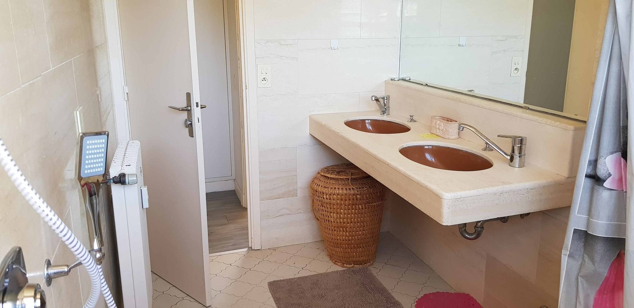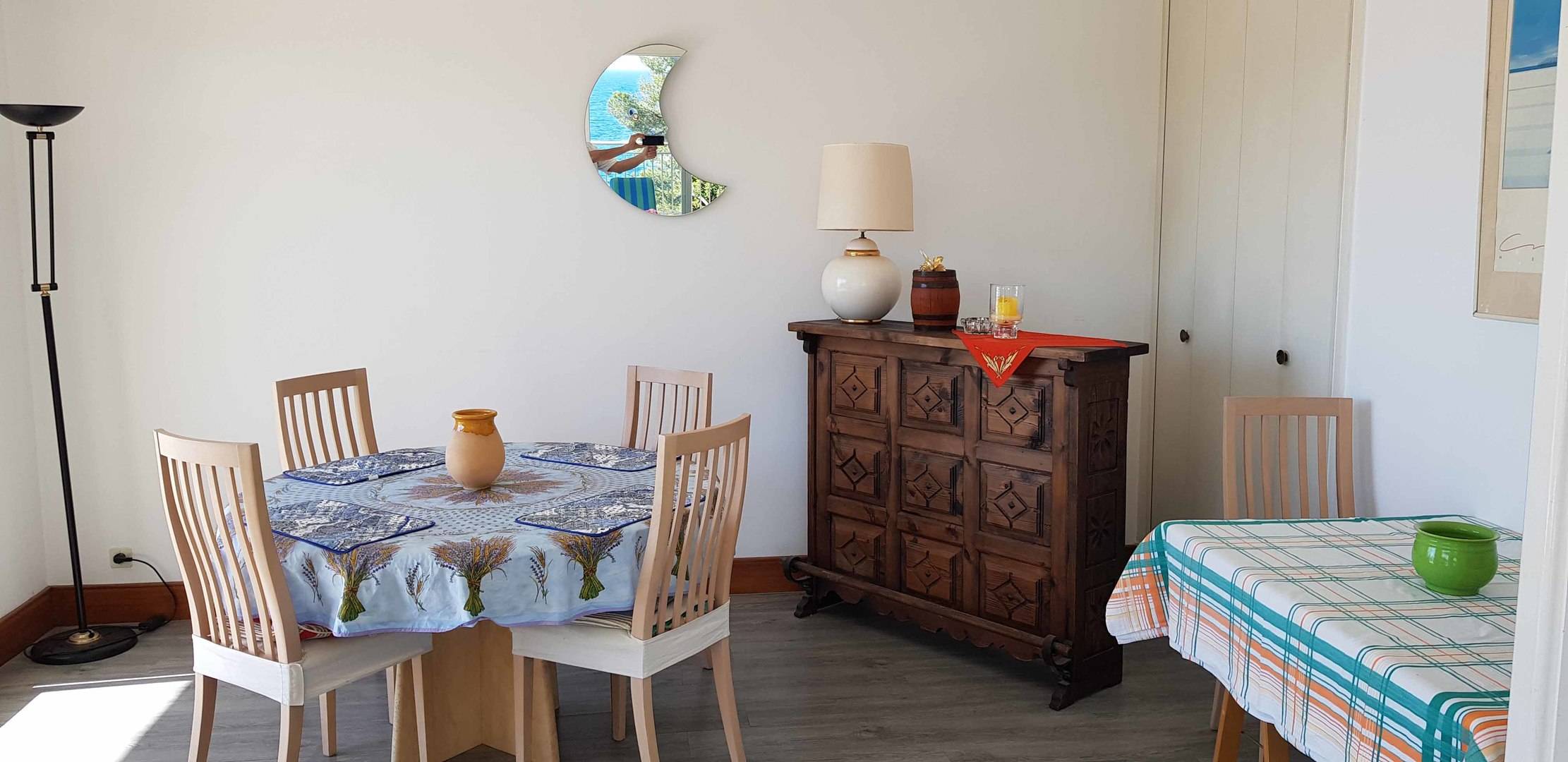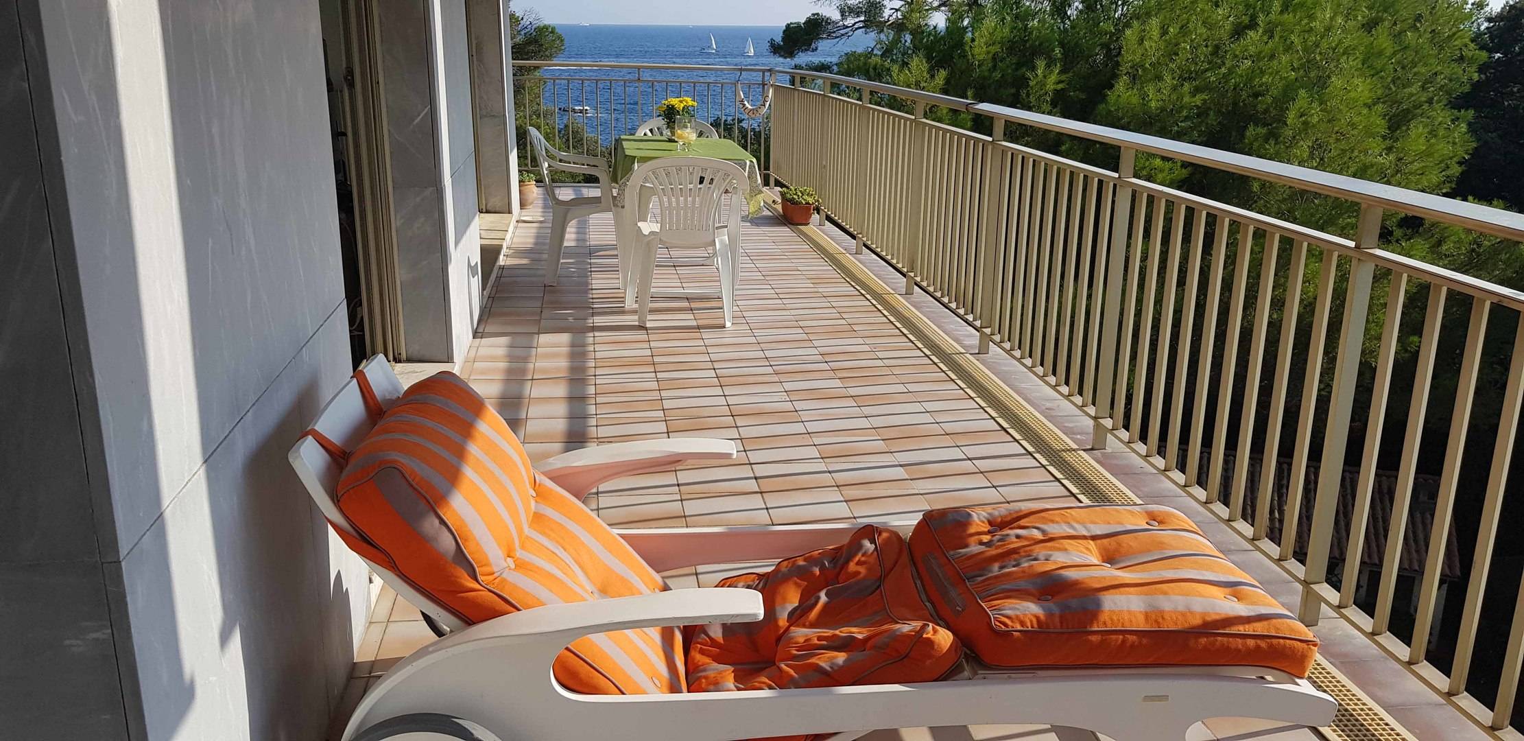 L'appartement a 100 m2 habitables avec une grande salle à manger - séjour, 2 chambres, une cuisine équipée, une salle de bains, wc séparés, chaque pièce est très lumineux avec de grandes baies vitrées. Le tout est en bon état. Les balcons contournent l'appartement sur trois orientations. Nous avons l’habitude de prendre tous les repas sur les balcons ou vous trouverez table et chaises. Il est idéal pour un couple avec deux ou trois enfants, vous avez une grande chambre parentale avec un grand lit double, une chambre avec deux lits simples gigognes, un lit double a été installé sous l'escalier donnant sur la terrasse (coin pour jeune amoureux), dans le salon vous avez également un canapé-lit pouvant servir d'appoint.
