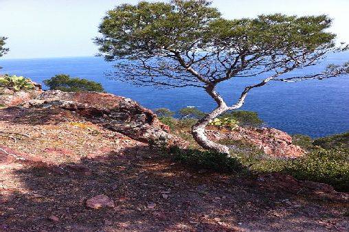 Le matin sans aucun vis à vis et vue sur la mer face au golfe de Saint Tropez entre le lion de terre et le lion de mer et vue imprenable sur le parc. La pièce à vivre se compose d'un salon équipé d'un canapé convertible avec fauteuil et pouf,table de salon, télévision et internet; salle à manger avec table et 6 chaises, une cuisine américaine avec four pyrolyse et micro onde, frigo -congélateur,lave vaisselle et lave linge, plaque de cuisson et hotte, grille pain , machine à café, fer à repasser.C'es un plaisir de pouvoir prendre tous les repas dehors avec une vue magnifique . Bains de soleil fournis . L'appartement est équipé d'une climatisation chambres et séjour. Cet appartement entièrement rénové dans un style moderne peut accueillir 6 personnes .