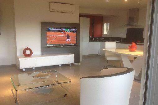 L'appartement de 70 m2 se compose d'un hall , d'une chambre avec deux lits 90x190 avec possibilité de jumelage , une chambre avec un grand lit 160x200 avec douche italienne ainsi que d'une salle de bain avec baignoire le tout donnant sur un balcon de 12m2 côté ouest . Côté sud est , le séjour de 40m2 s'agrandit de 12m2 de balcon accessible par deux baies vitrées de 5 mètres d'ouverture totale, ensoleillement dès