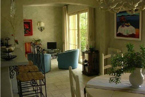 Cuisine américaine-salle a manger,salon av canapé-lit de 140, chambre lit électrique Charmant Appartement en Rez de Jardin de Maison située a Saint-Raphael. Piscine privée au sel 5x10 réservée exclusivement a la location , tonnelle avec barbecue Proche de tout commerces, nombreuses activités. Lotissement sécurise avec digicode, très calme