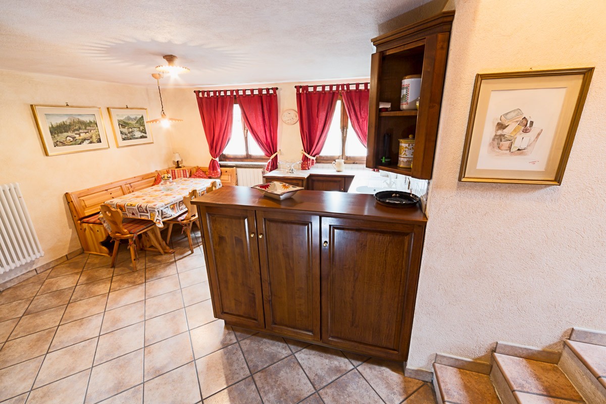 Appartamento in casa rurale completamente ristrutturata disposta su due piani completa di sala da pranzo, due camere da letto matrimoniali e una mansarda con due letti singoli. Al piano inferiore caratteristica taverna con soffitto a volta in pietra a vista con cucina tradizionale in muratura e ceramica. La taverna è dotata di lavatrice. Ideale per nucleo famigliare e coppie amanti la tranquillità. All'esterno una zona verde condominiale attrezzata con sdraio, tavolo, sedie e ombrellone. La casa si trova al centro del piccolo villaggio di Cerisey nel Comune di Saint Rhemy en Bosses, ultimo