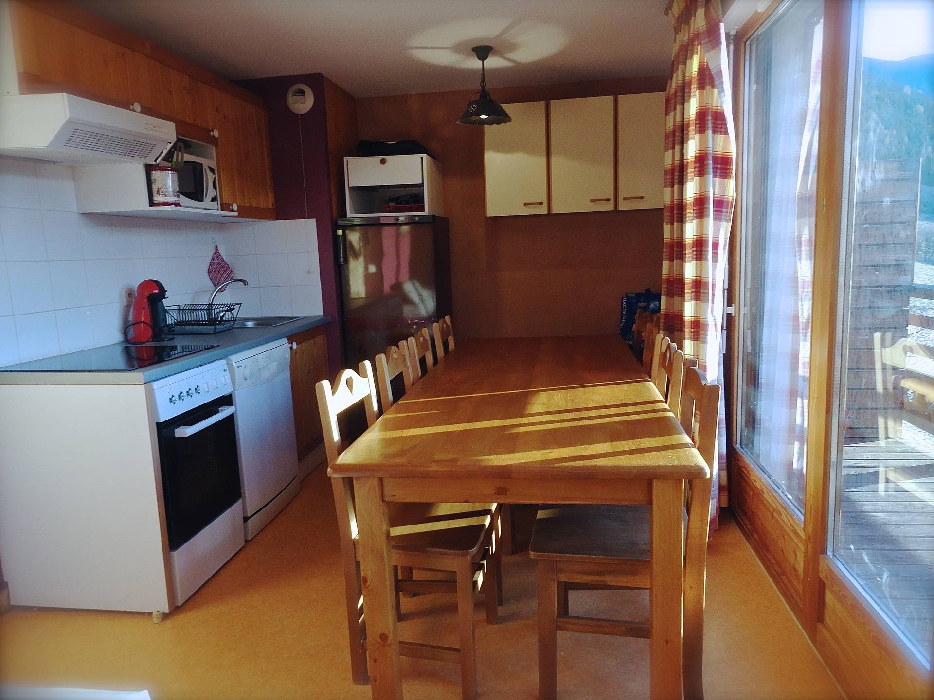 Ce bel appartement d'environ 50 m2 est composé d'une entrée avec un coin montagne (lit simple), un séjour avec cuisine équipée et canapé lit, une chambre parentale avec un lit double et une grande mezzanine avec un lit double et un lit simple. Il y a une