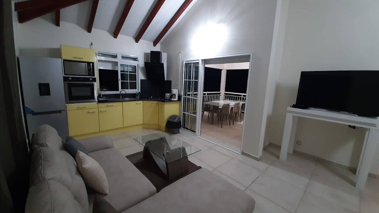 Hébergement contemporain, neuf, décoré avec goût, salon, le tout sécurisé avec volets roulants et portail, il se situe à 24 minutes de l’aéroport Pôle Caraïbes.