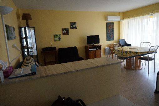 Le séjour est équipé d’un canapé lit type BZ 2 places, d'un canapé lit type BZ 1 place, une table basse, une grande table, 4 chaises, une télévision LCD, un combiné lecteur DVD- Magnétoscope. Le balcon 17 m2 comprend une table avec rallonge, 4 chaises et un transat.