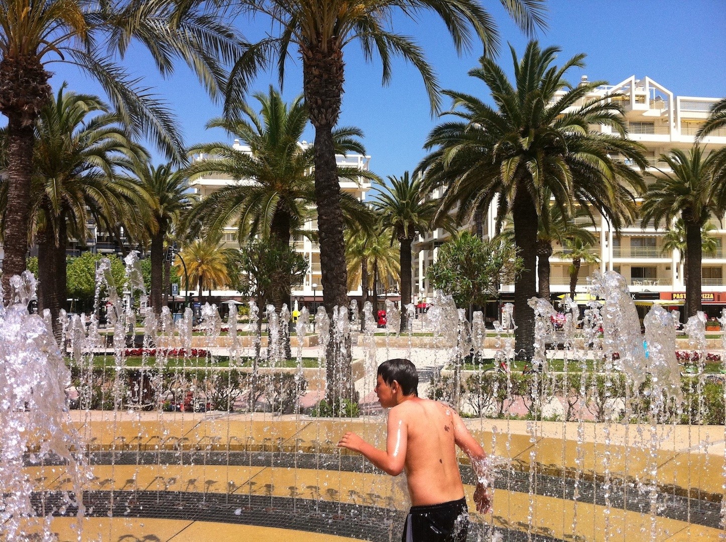 Une grande terrasse, auvent à commande électrique et donnant sur la mer et la promenade, les fontaines colorées. Très agréable pour le déjeuner, le dîner ou les bains de soleil.