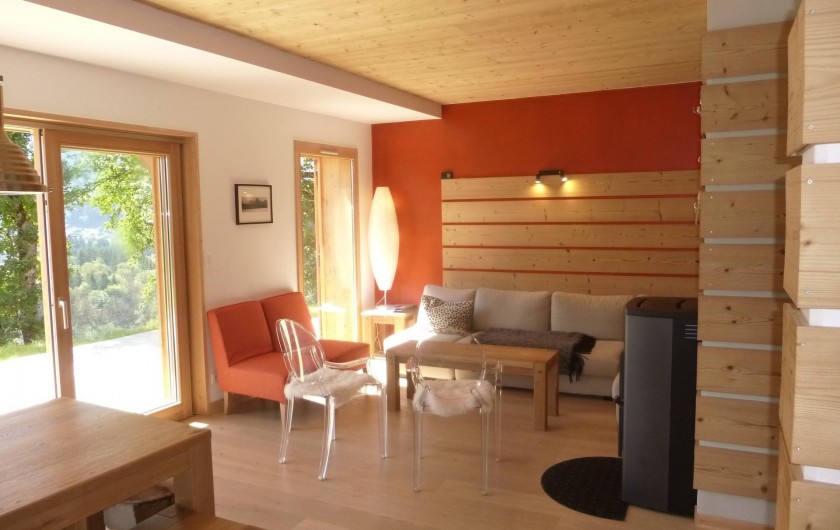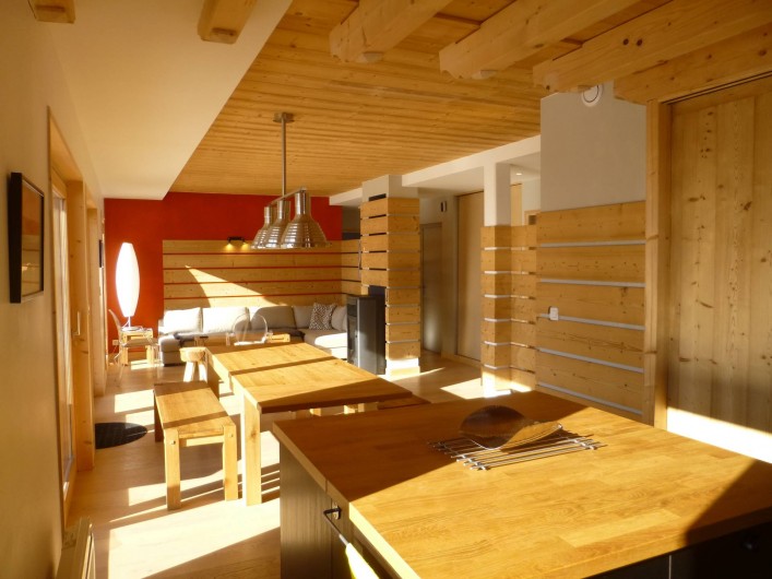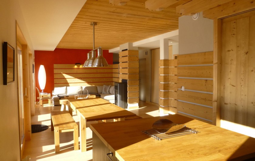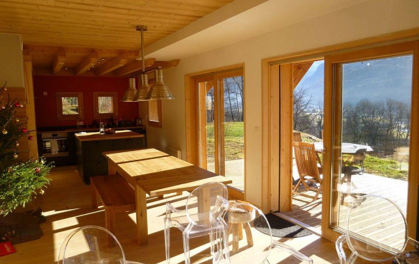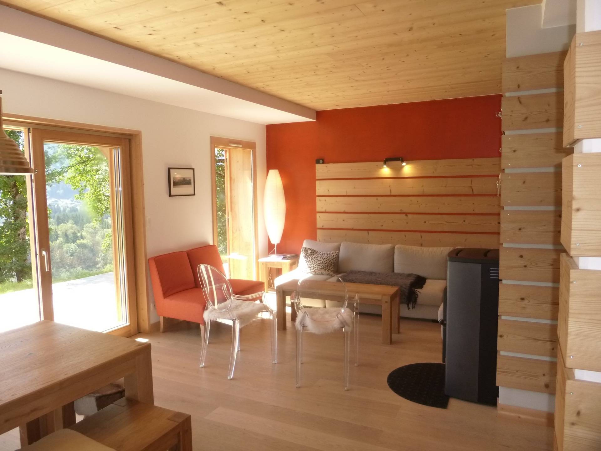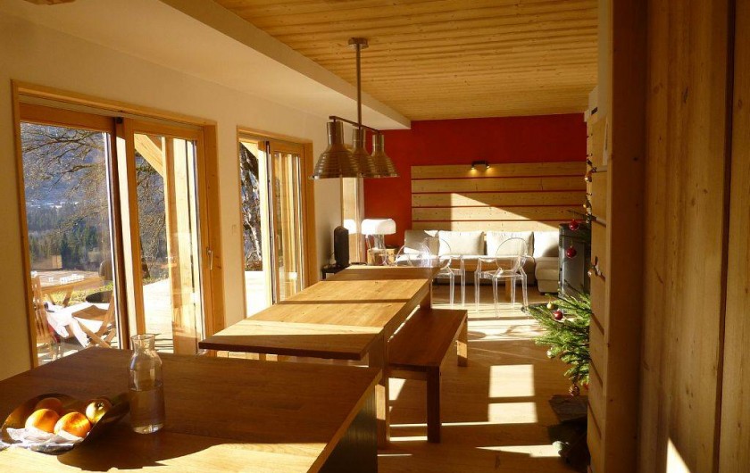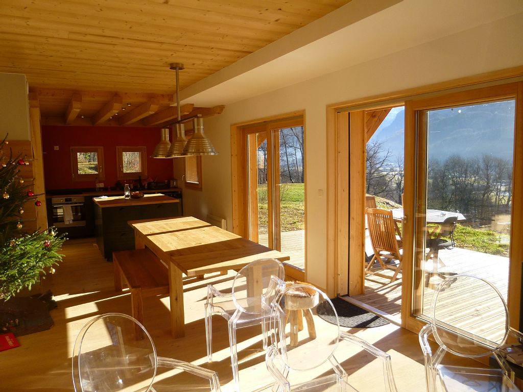 Grand Appartement familial de 100 m2 dans chalet neuf, très ensoleillé sur coteau Sud, de Samoens. Grande terrasse prolongée par terrain autour . Configuration ideale pour accuellir 2 familles . Grande pièce à vivre (salon, salle à manger, cuisine ouverte). 2 chambres double avec douche et lavabo particulier ,1 chambre a 3 lits simples dont deux superposés , 1 chambre dortoir a 5 lits simples, . 1 salle de bains avec baignoire 2 lavabos, seche serviette , 1 wc separé, 1 cellier avec lave linge . Lave vaisselle, four , plaque a induction , grille pain, bouilloire, micro-onde, cafetière. … Local à ski, parking privé 4 pl . 1,5 km du centre de Samoens (15mn à pied). Voiture recommandée. Pas d''animaux. Draps fournis en option supplémentaire. Telecabine express au village a 2 Km pour acces au domaine skiable du " Grand massif " Lire moins Lire la suite