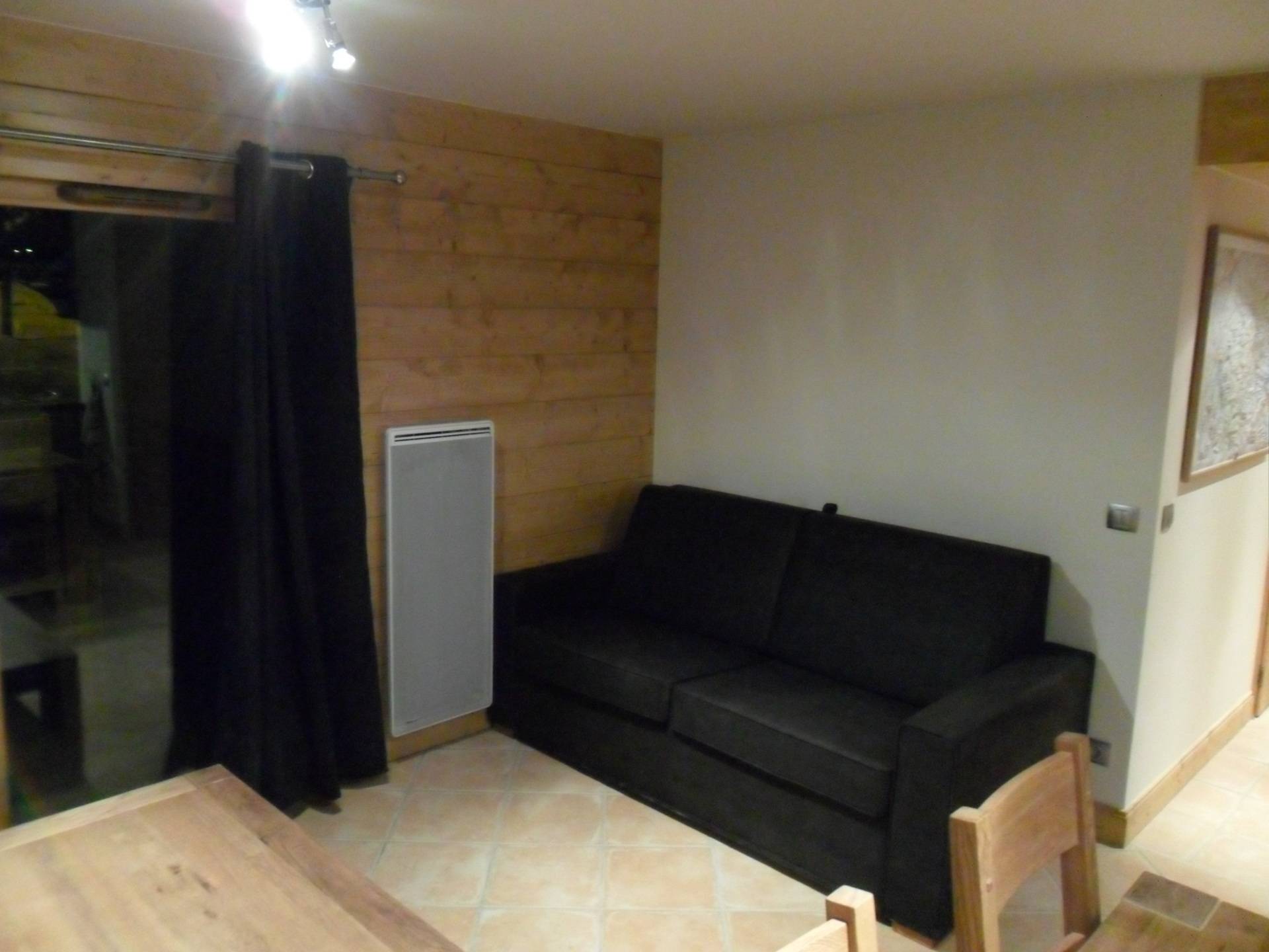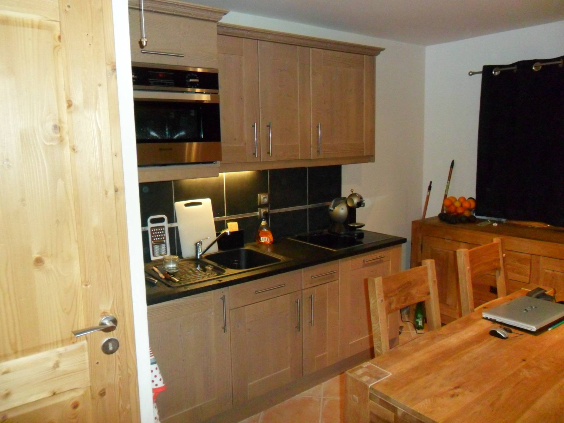Une chambre avec un grand lit 160 x 200, un séjour cuisine avec un canapé convertible en lit 140 x 190
