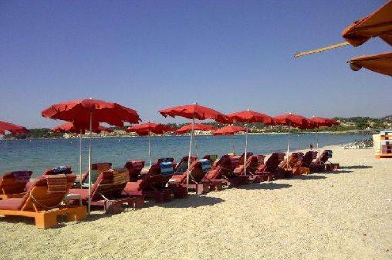Vous vous rendez à la plage la plus proche située à 300m , la plage de Bonnegrace, à pied , en passant par une allée de platanes ombragée.