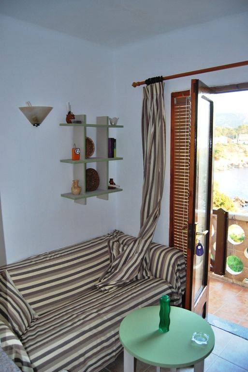Terrasse avec vue et accès direct à la mer, mobilier de jardin et barbecue. Accès véhicule pour charger et décharger.