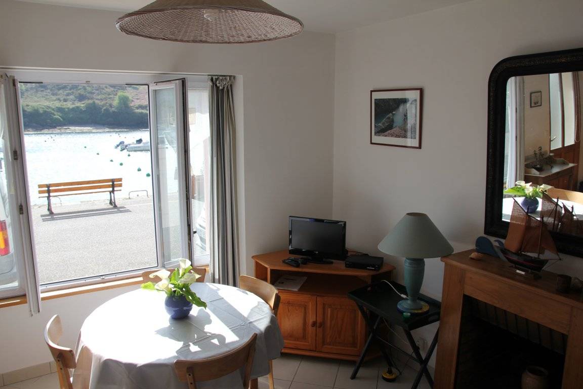 Cet appartement peut accueillir. 7 pers avec tout le confort Du balcon donnant sur le quai vous serez le spectateur à tout instant de la vie du port accès rapide aux sentiers côtiers pour de belles balades qui vous emmèneront jusqu'aux plages environnantes ou des parties de pèche, surf kayak ou randos.les activités ne manquent pas sur l'ile